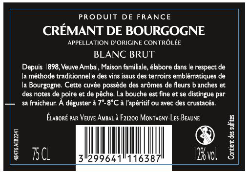 | Libellé | Crémant de Bourgogne AOP Veuve Ambal Grande Réserve - Brut - 75 cl |