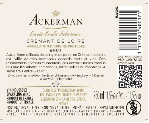 | Libellé | Crémant de Loire AOP Ackerman - Brut - 75 cl |