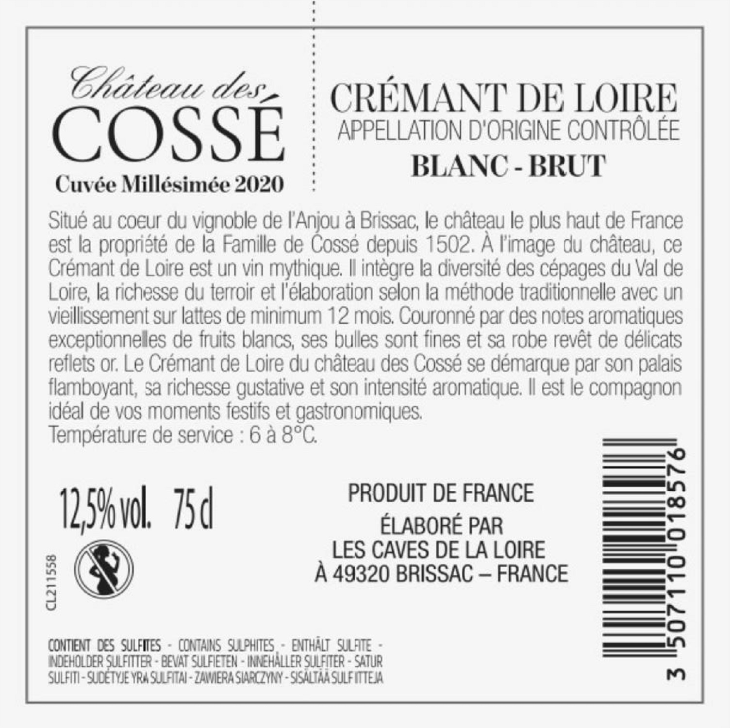 | Libellé | Crémant de Loire AOP Château des Cossé Réserve du Marquis - Brut - 75 cl |