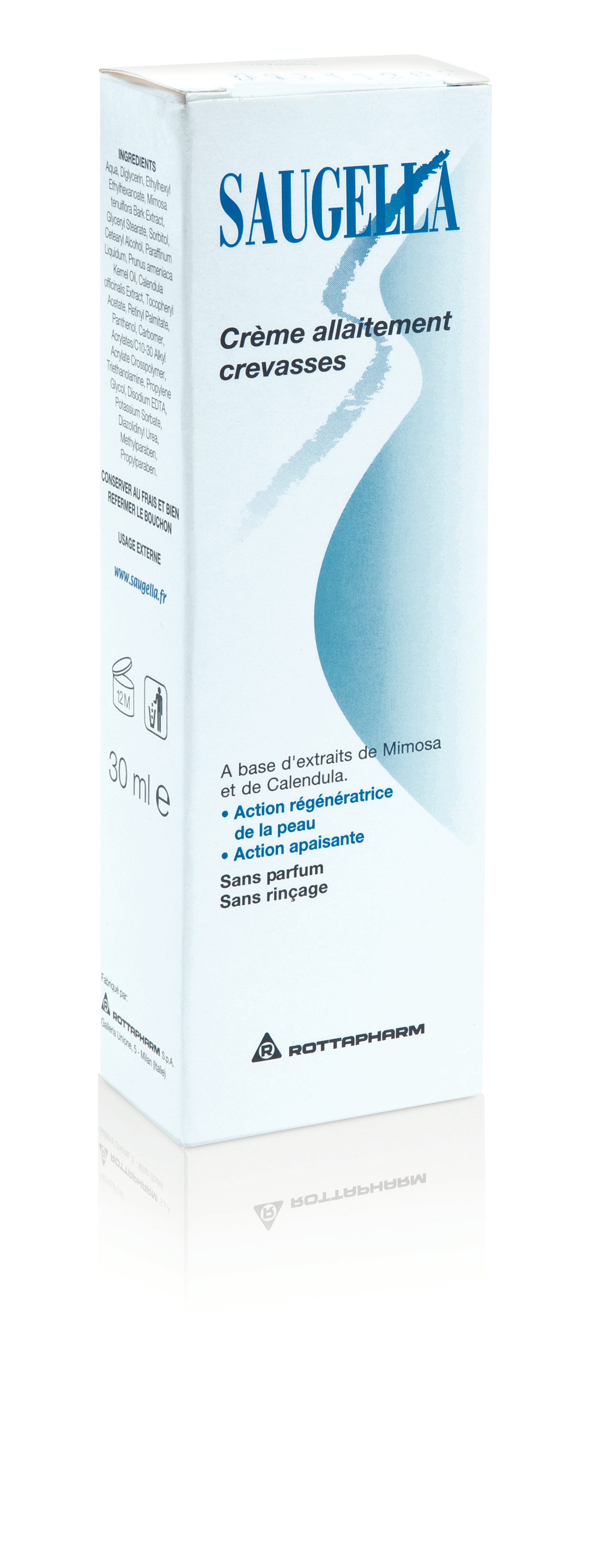 Saugella Crème Allaitement Crevasses 30 ml à base d'extraits de Mimosa et de Calendula a une action régénératrice et protectrice de la peau. L'extrait de Calendula présent dans la formule permet d'apaiser la peau pour une sensation de bien-être et de confort. Produit toléré aussi bien pour la maman que pour le nourrisson. Sans paraben. Sans parfum.