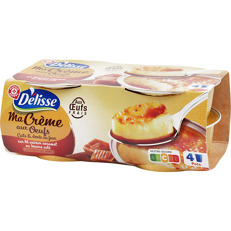 Crème aux oeufs sur lit de préparation à base de caramel au beurre salé, aromatisée DELISSE