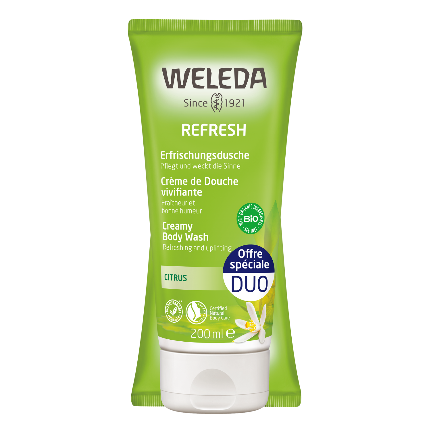 Weleda Crème de Douche au Citrus Lot de 2 x 200 ml, sans savon, au pH physiologique, est composée d'une base lavante végétale douce qui respecte l'équilibre naturel de la peau. Enrichie en huile de sésame, elle est source d'acides gras essentiels. Elle préserve l'épiderme du dessèchement et garantit un réel confort cutané. L'huile essentielle de citron, au parfum vivifiant, procure fraîcheur et bonne humeur pour toute la journée. Cosmétiques naturels contrôlés BDIH. Sans conservateurs, sans colorants, sans parfums de synthèse, sans huiles minérales. Non testé sur les animaux