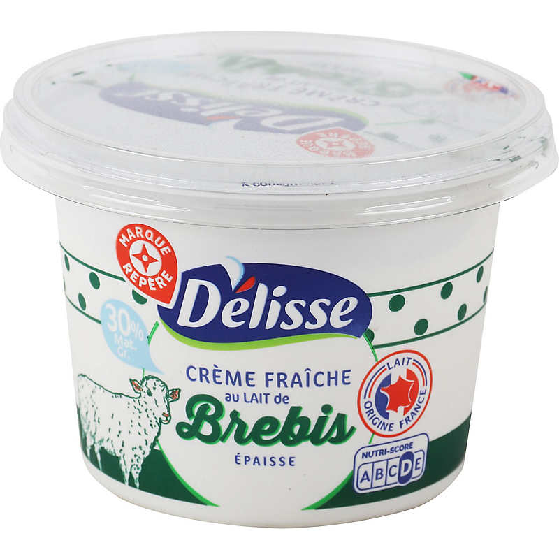 Crème de brebis pasteurisée à 30 % de matières grasses (origine : France), ferments lactiques.