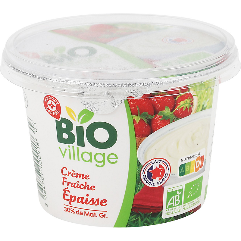 Crème fraîche épaisse à 30 % de matière grasse, issue de l'agriculture biologique BIO VILLAGE