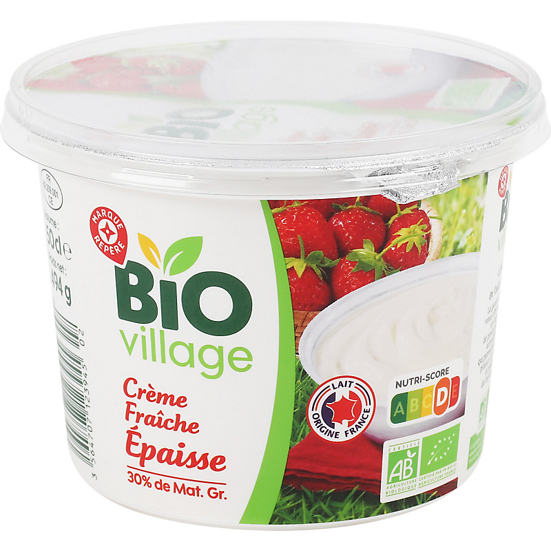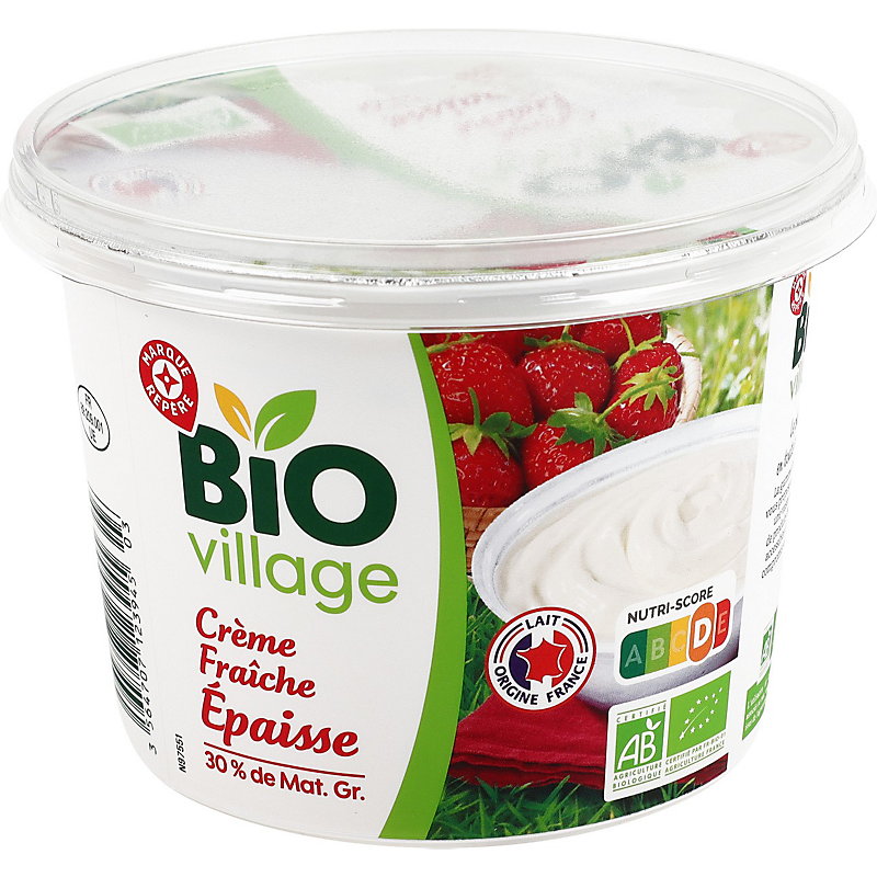 Crème fraîche épaisse à 30 % de matière grasse, issue de l'agriculture biologique BIO VILLAGE