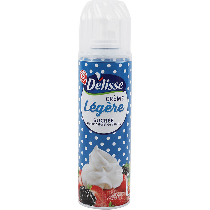 Crème légère sucrée et aromatisée à la vanille, sous pression, stérilisée UHT, à 20 % de matières grasses DELISSE