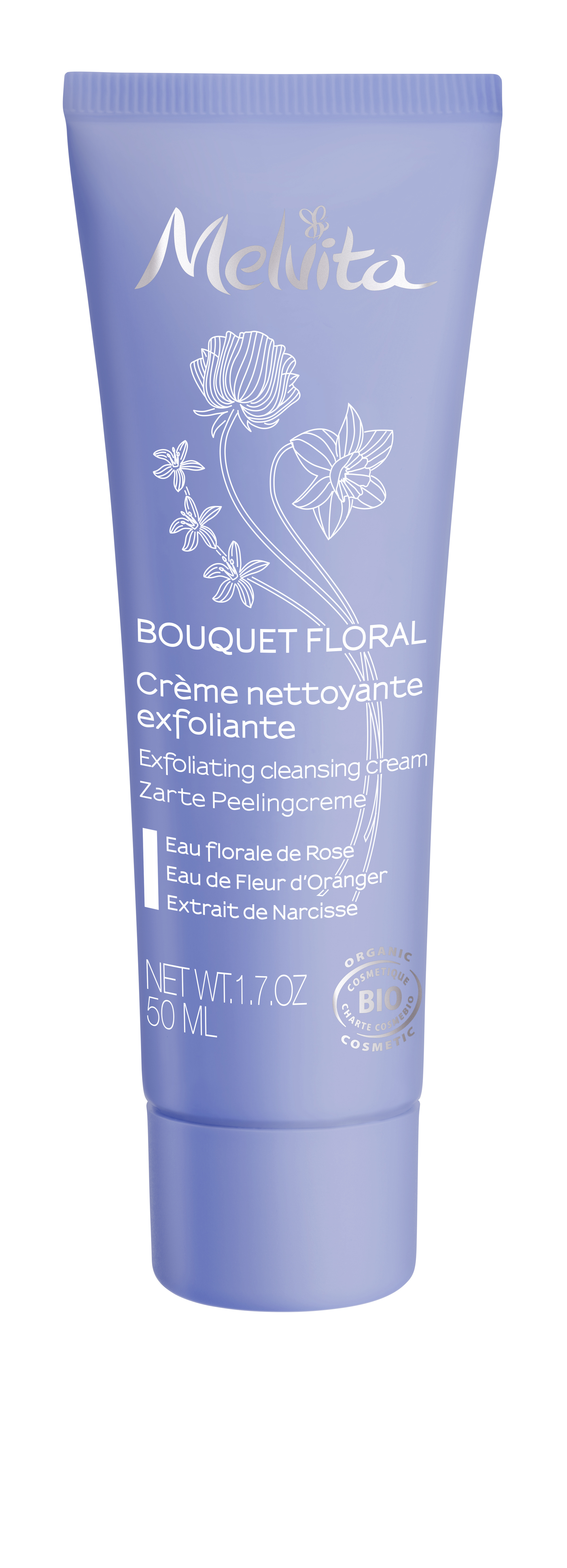 La crème nettoyante exfoliante visage bio Bouquet Floral est un soin exfoliant doux qui permet d’éliminer délicatement les cellules mortes et les impuretés de la peau. Enrichi en eau florale de rose et de fleur d‘oranger, ce soin exfoliant contribue à hydrater, apaiser et adoucir la peau.