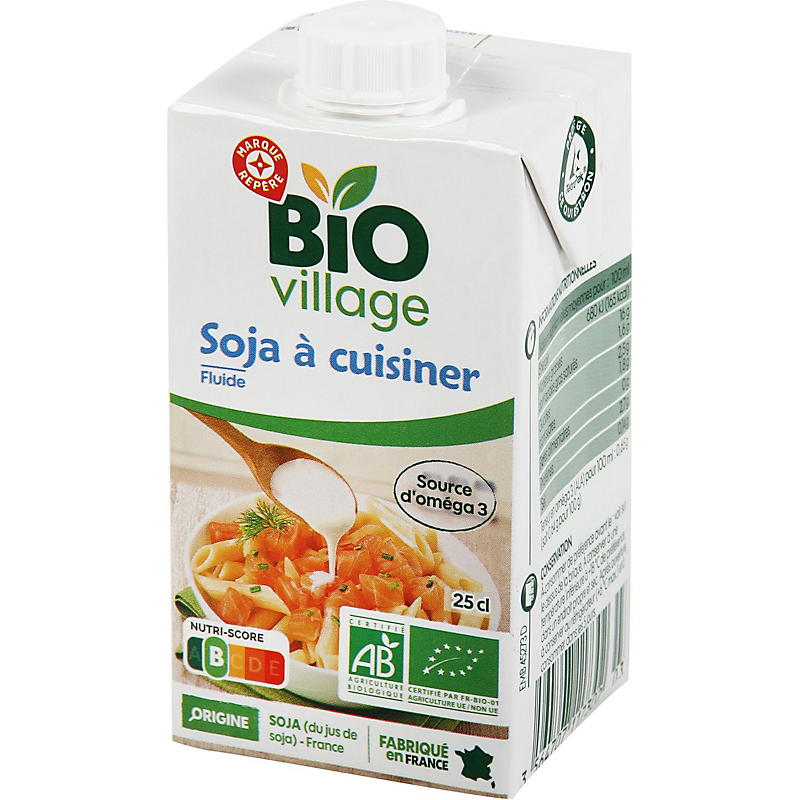 PREPARATION CULINAIRE A BASE DE SOJA STERILISEE UHT - PRODUIT ISSU DE L'AGRICULTURE BIOLOGIQUE BIO VILLAGE