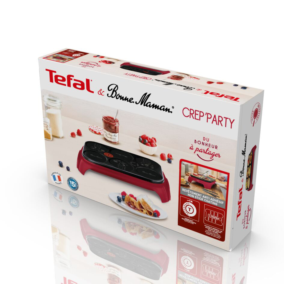 Amusante, pratique et facile à ranger, la crêpière Crep'Party Tefal Bonne Maman vous assure de délicieuses crêpes et pancakes jusqu'à 6 personnes. Parfaite pour des moments savoureux partagés en famille et entre amis. Avec son rangement des accessoires intégré, son revêtement antiadhésif, son indicateur de chaleur Thermo-Spot® vous assurant des résultats parfaits à chaque fois, c'est la crêpière qu'il vous faut !