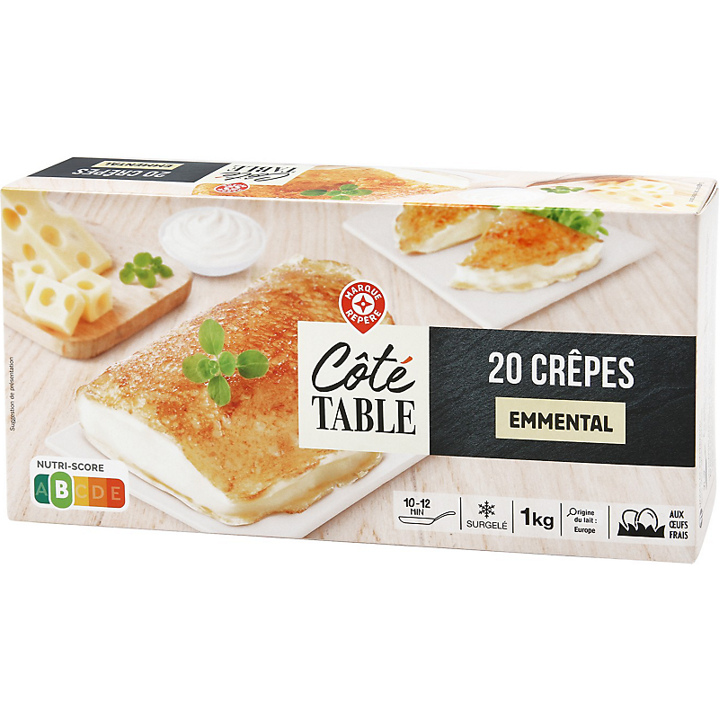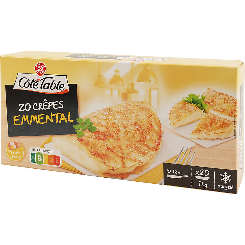 Crêpes garnies d'une préparation à base d'emmental, surgelées COTE TABLE