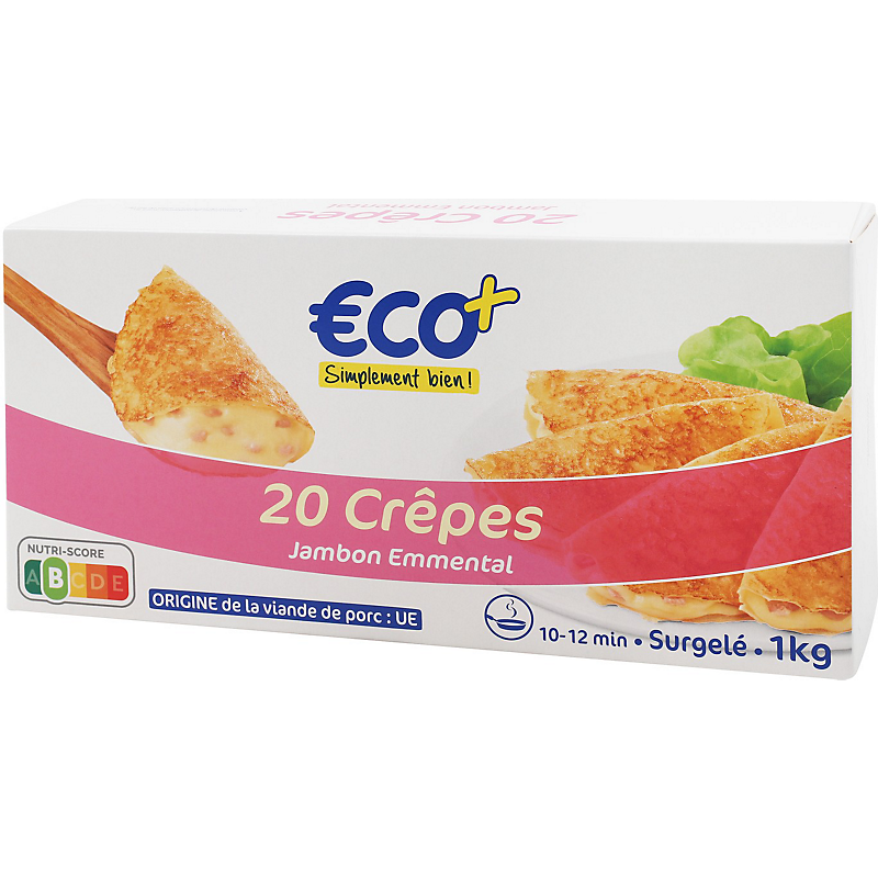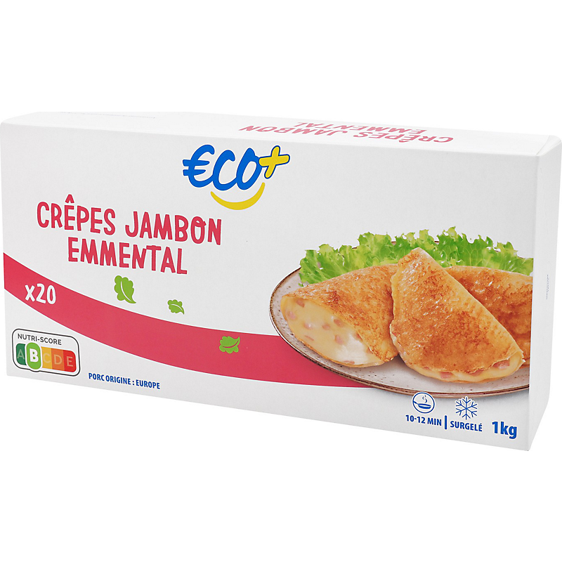 Crêpes garnies d'une préparation à base de jambon cuit standard et d'emmental - Surgelées ECO +