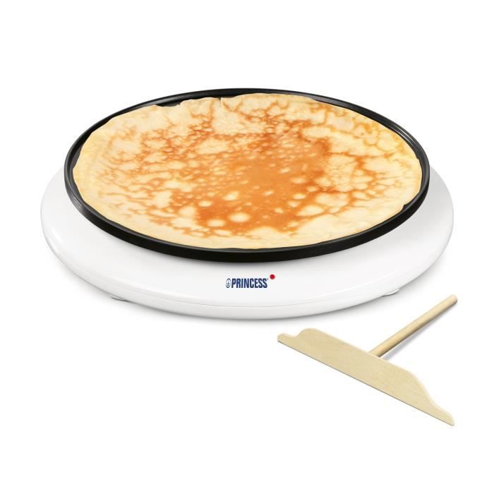 Faites de délicieux pancakes américains moelleux ou des crêpes françaises avec le Princess 492227 Pancake maker. Vous pouvez répartir la pâte uniformément et très finement avec la spatule à crêpes en bois inclus pour des vraies crêpes à la Française. Ou faites des pancakes moelleux aux myrtilles ou avec du bacon et du sirop d'érable. Grande surface de cuisson de 30 cm Vous aimez faire des pancakes pour vos enfants ou pour une fête d'anniversaire pour enfants, mais ils sont souvent mal faits ? Essayez le Princess Pancake Maker. Il vous suffit de mettre un tout petit peu d'huile ou de beurre grâce au revêtement antiadhésif à deux couches. Des pancakes parfaits à chaque fois. Et avec la spatule en bois, vous pouvez aussi réaliser les meilleures crêpes authentiques à la française à la maison. Contenu de l'emballage : Crêpière Princess Pancake Maker, spatule en bois, mode d’emploi Caractéristiques : Plus de pancakes mous ou brûlées plus avec cette crêpière pratique Faites des pancakes moelleuses ou des crêpes ultra-fines à la Française Vous pouvez répartir uniformément la pâte avec la spatule à pancakes en bois inclus Grande surface de cuisson de 30 cm pour une crêpe parfaite ou un maximum de 4 pancakes américains Facile à nettoyer avec un torchon humide