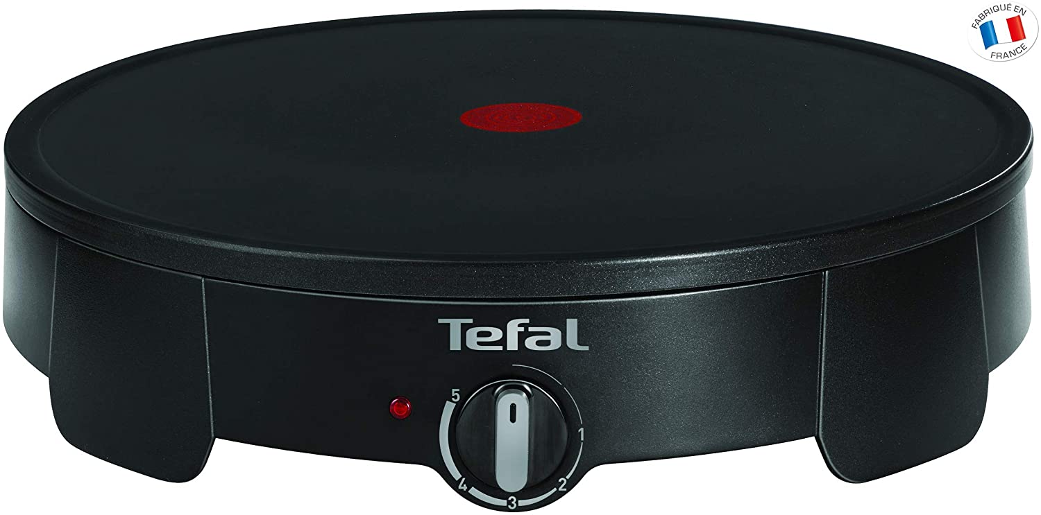 Puissance: 1500 W Dimensions: 37,2 x 37,2 x 9 cm Poids: 2,72 kg Points Forts: Plaque en aluminium forgée à froid de 35 cm Plaque avec revêtement anti adhésif compatible lave vaisselle Indicateur Thermo-Spot Thermostat réglable 5 positions Livré avec 1 spatule, 1 répartiteur et 1 louche Couleur: Noir