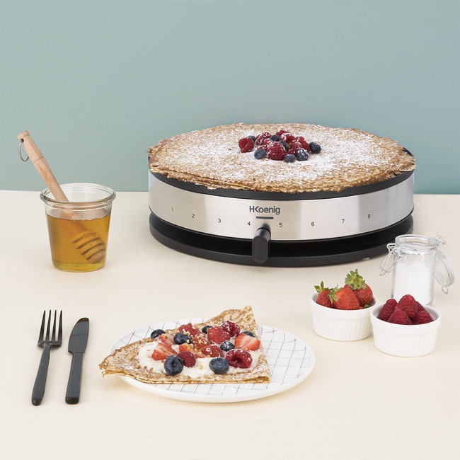 Réalisez en un instant vos crepes salés ou sucrés grâce à la crépière design KREP29 de HKoenig. Sa surface de cuisson extra large de 33 cm et son thermostat réglable jusqu'à 230°C s'adaptent à vos goûts et vos besoins. Profitez d'un moment convivial avec vos proches autour d'une crepe party !