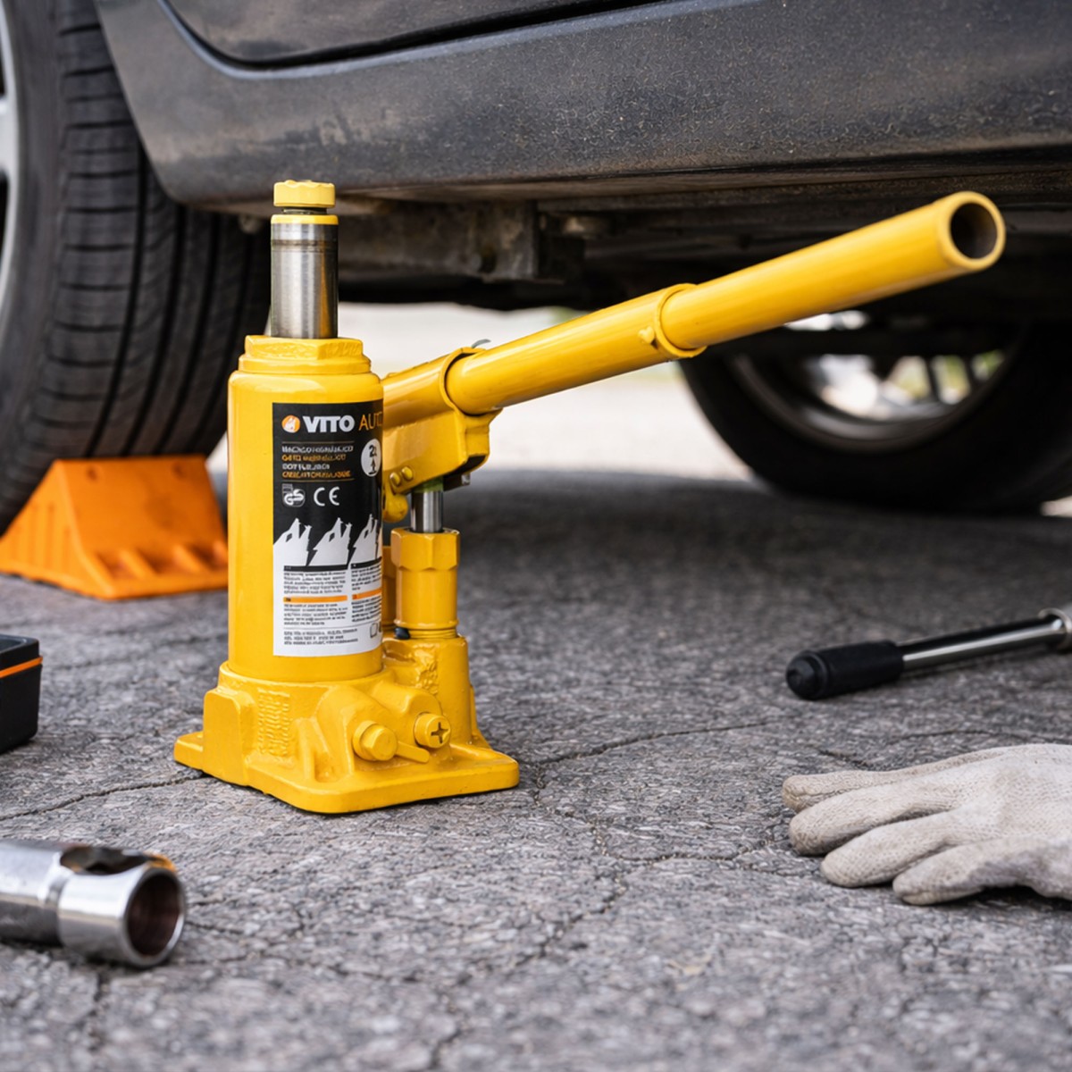 Le cric VITO est également compact et pratique, avec un levier d'actionnement amovible qui facilite le rangement et le transport. Sa conception ergonomique permet une utilisation simple et rapide, tout en assurant un levage stable et contrôlé. Idéal pour les professionnels de l'automobile, les garages, les ateliers ou pour un usage domestique, ce cric hydraulique combine performance, sécurité et durabilité.