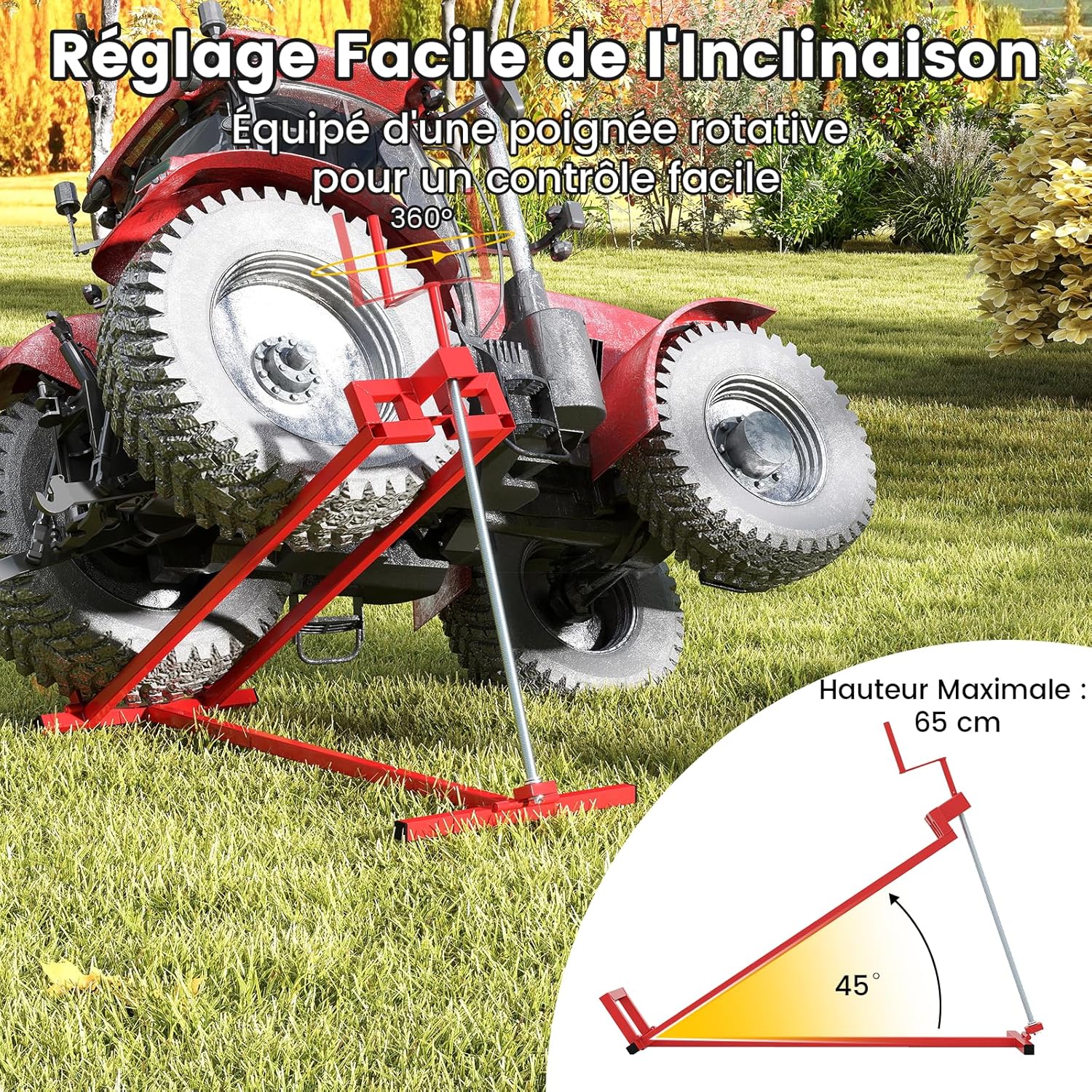 Cric Lève-tondeuse Métal, Inclinaison 45°, Réglable, Charge 400 kg, Gain de Place, Nettoyage Pont