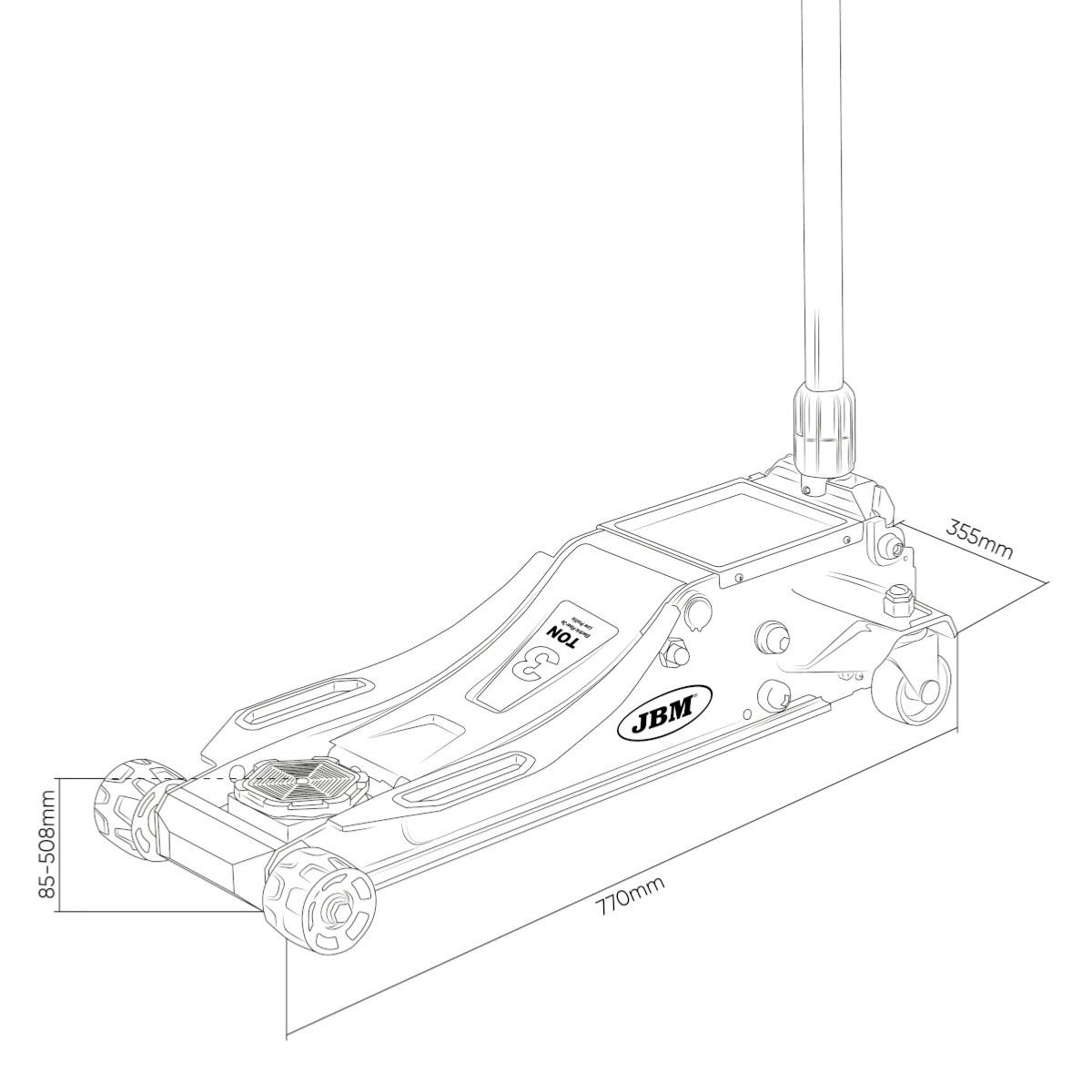 | Libellé | CRIC ROULEUR HYDRAULIQUE 3T SUR BATTERIE, HAUTEUR LEVAGE MAX 508 MM |