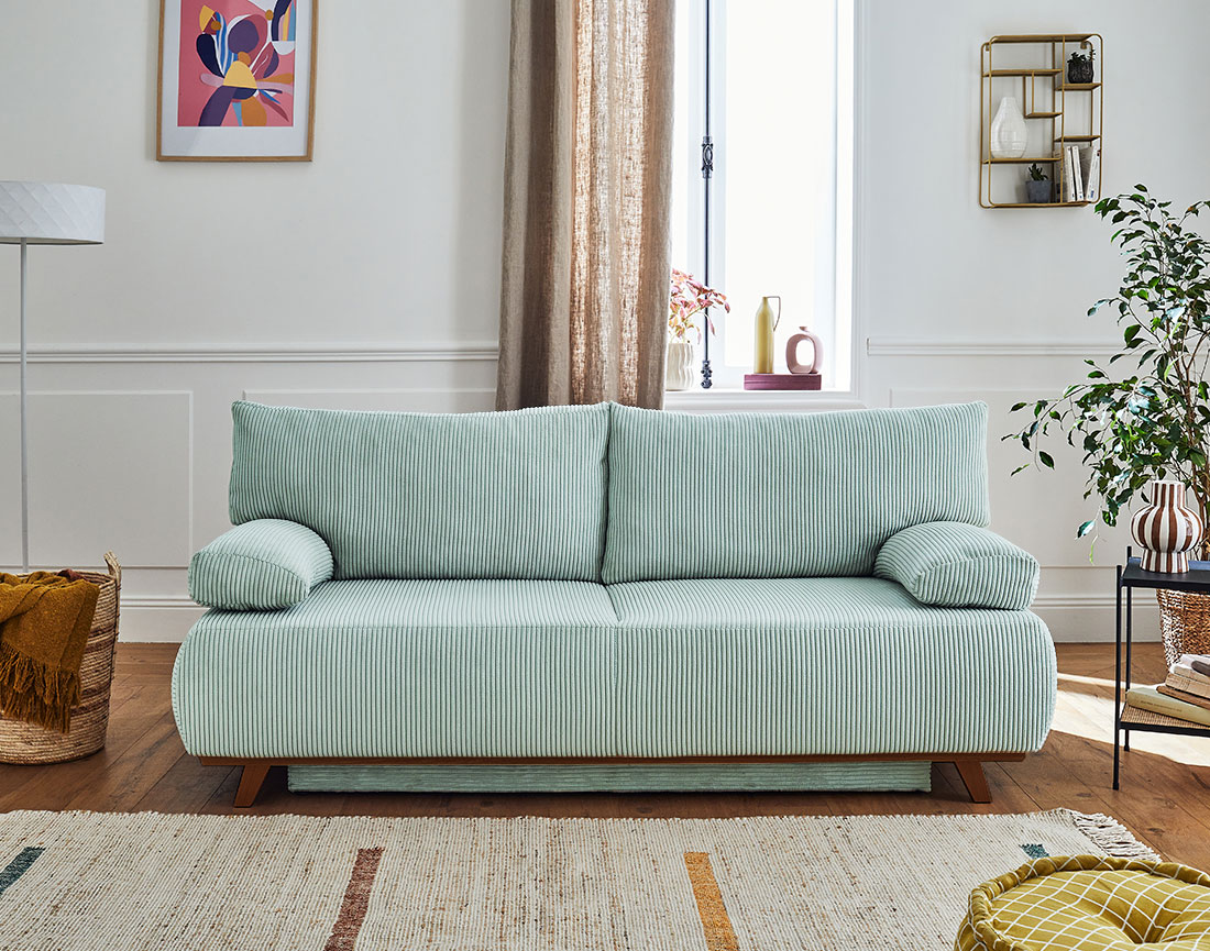 | Libellé | Cristal - canapé 3 places - convertible avec coffre - en velours côtelé |