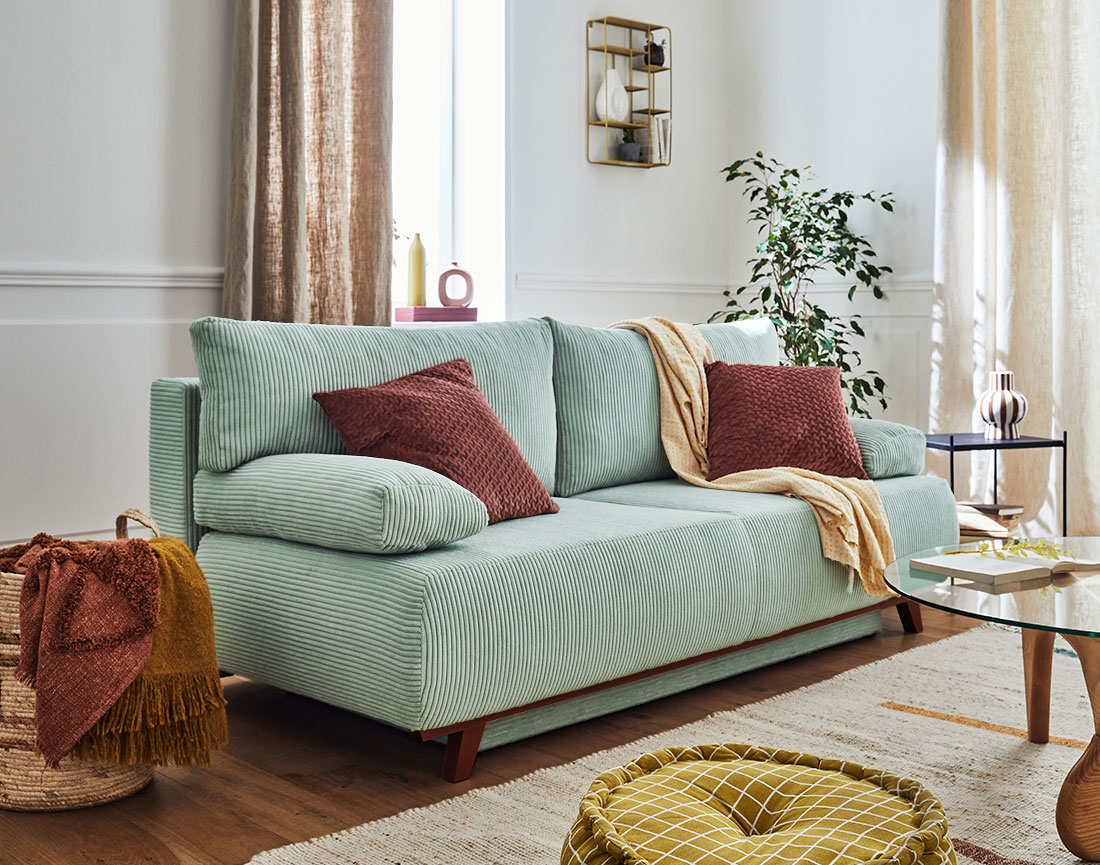 | Plus produit | [Canapé Convertible] Compact et fonctionnel, Cristal se transforme en lit d’appoint tout en gardant son style élégant. [Coffre Intégré] Espace de rangement pratique sous l’assise pour optimiser votre salon. [Velours Côtelé Doux] Toucher agréable et esthétique raffinée pour un intérieur chaleureux. [Structure Robuste] Conçu avec des matériaux de qualité pour garantir stabilité et longévité. [Montage Simple] Produit livré avec notice, vérifier l’accès aux pièces avant la réception. |