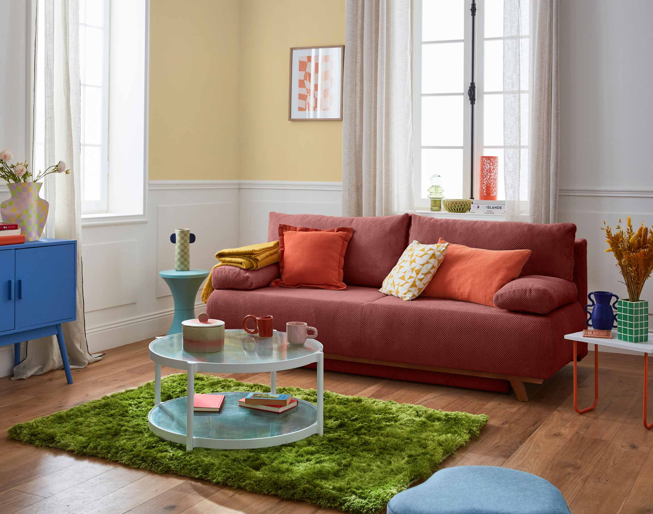 | Plus produit | [Canapé Convertible] Cristal - canapé 3 places - convertible avec coffre - en velours texturé combine design moderne et fonctionnalité lit intégré pour vos invités. [Couchage Quotidien] Mécanisme fluide et matelas confortable pour un usage régulier en lit 2 places. [Rangement Pratique] Coffre intégré pour stocker couette, coussins ou linge de lit facilement. [Assise Confortable] Rembourrage moelleux avec soutien ergonomique pour détente optimale. [Montage Facile] Livré en modules avec notice claire, montage rapide sans outil spécialisé. |