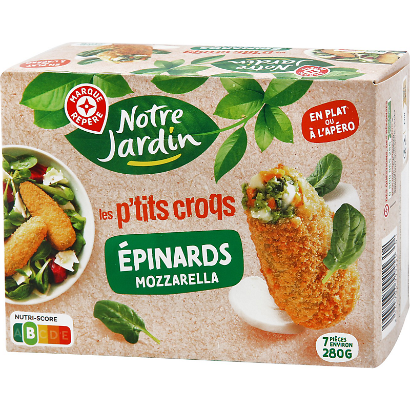 Préparation à base d'épinards et de mozzarella, panée, préfrite, surgelée NOTRE JARDIN