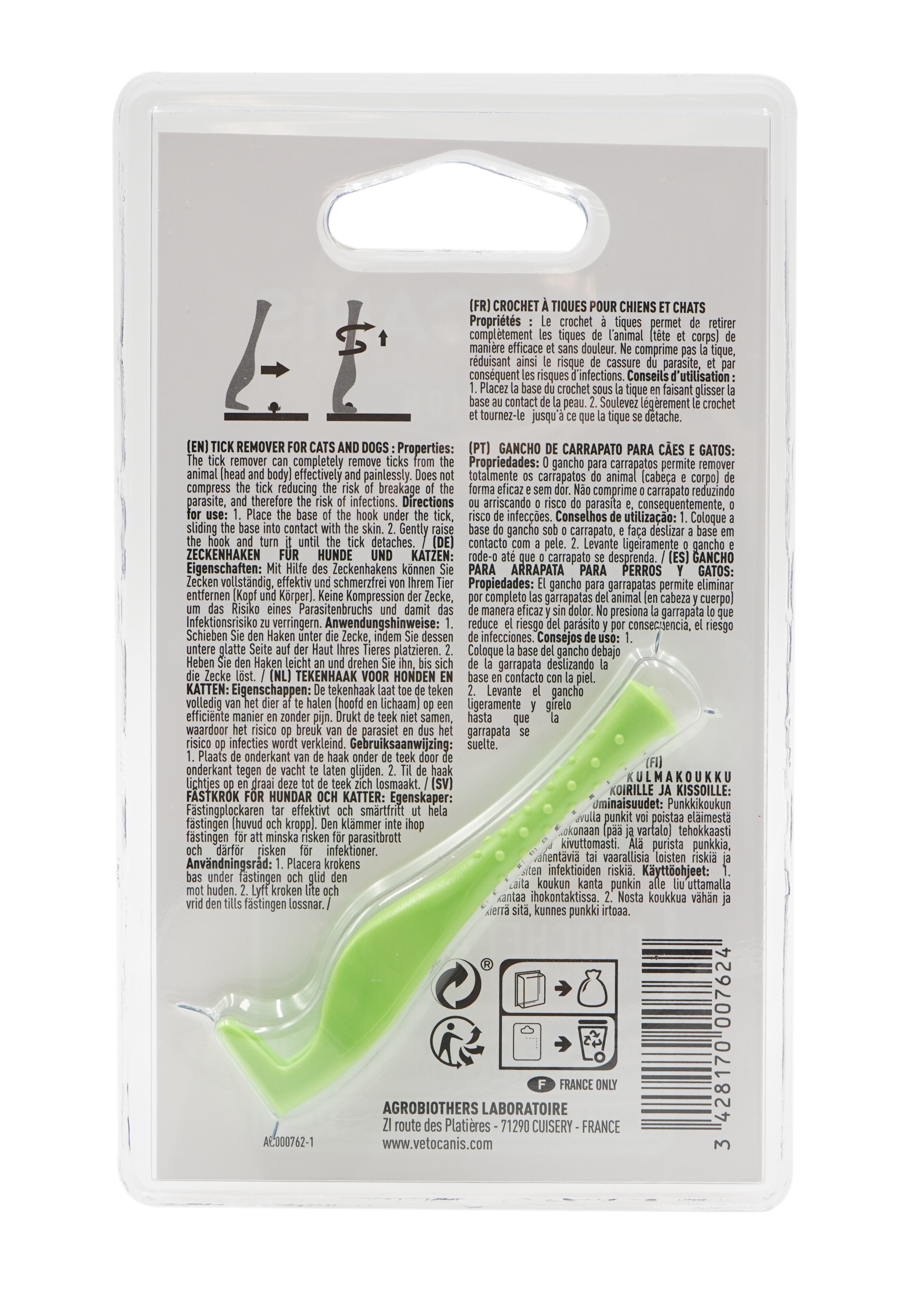 Ce crochet à tiques, est un moyen simple et efficace, pour enlever les tiques sur votre animal sans produits chimiques. Vous pourrez prendre soin de votre animal, grâce à cet outil facile à utiliser. Il permet d'enlever la tête du tique, facilement et sans produits nocifs pour votre chien et chat.