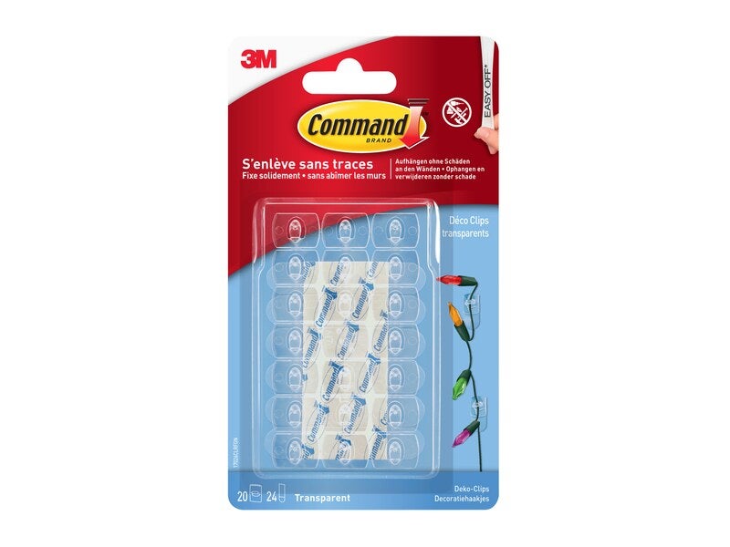 3M Command™ crochet clear transparent deco clip. Suspendre les objets. 20 languettes mini