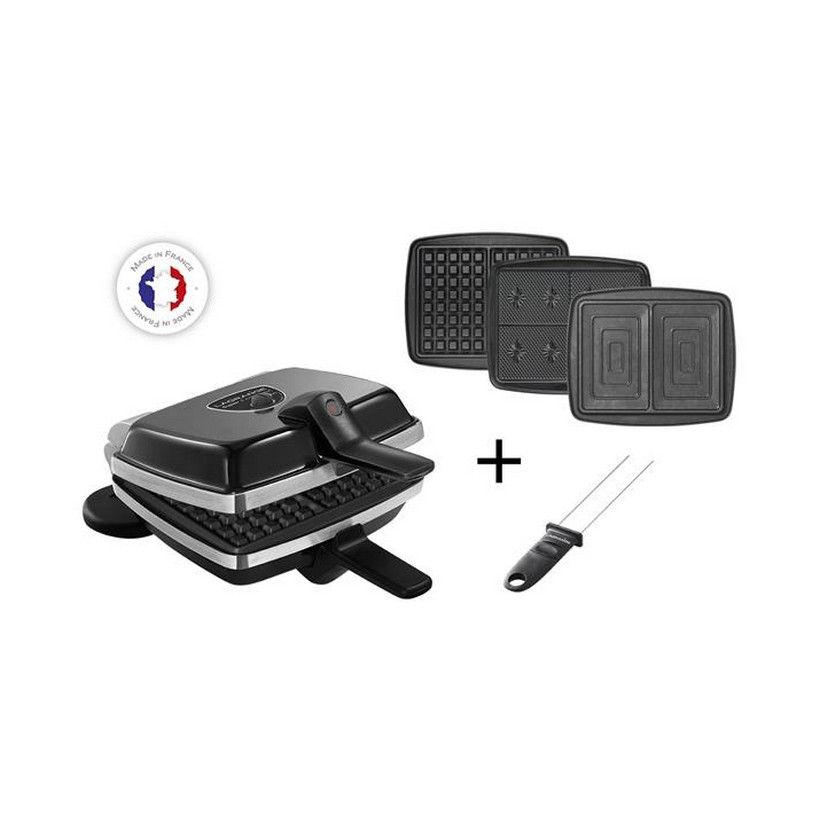 | Accessoires inclus | 1 plaque gaufres 155 x 100 mm, 1 plaque pour 4 gaufrettes 100 x 77 mm, 2 croque-monsieur 150 x 95 mm |