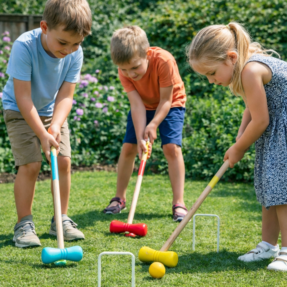 Jeu d’extérieur incontournable ! Ce set de croquet 4 joueurs est idéal pour s’amuser en plein air en famille ou entre amis.