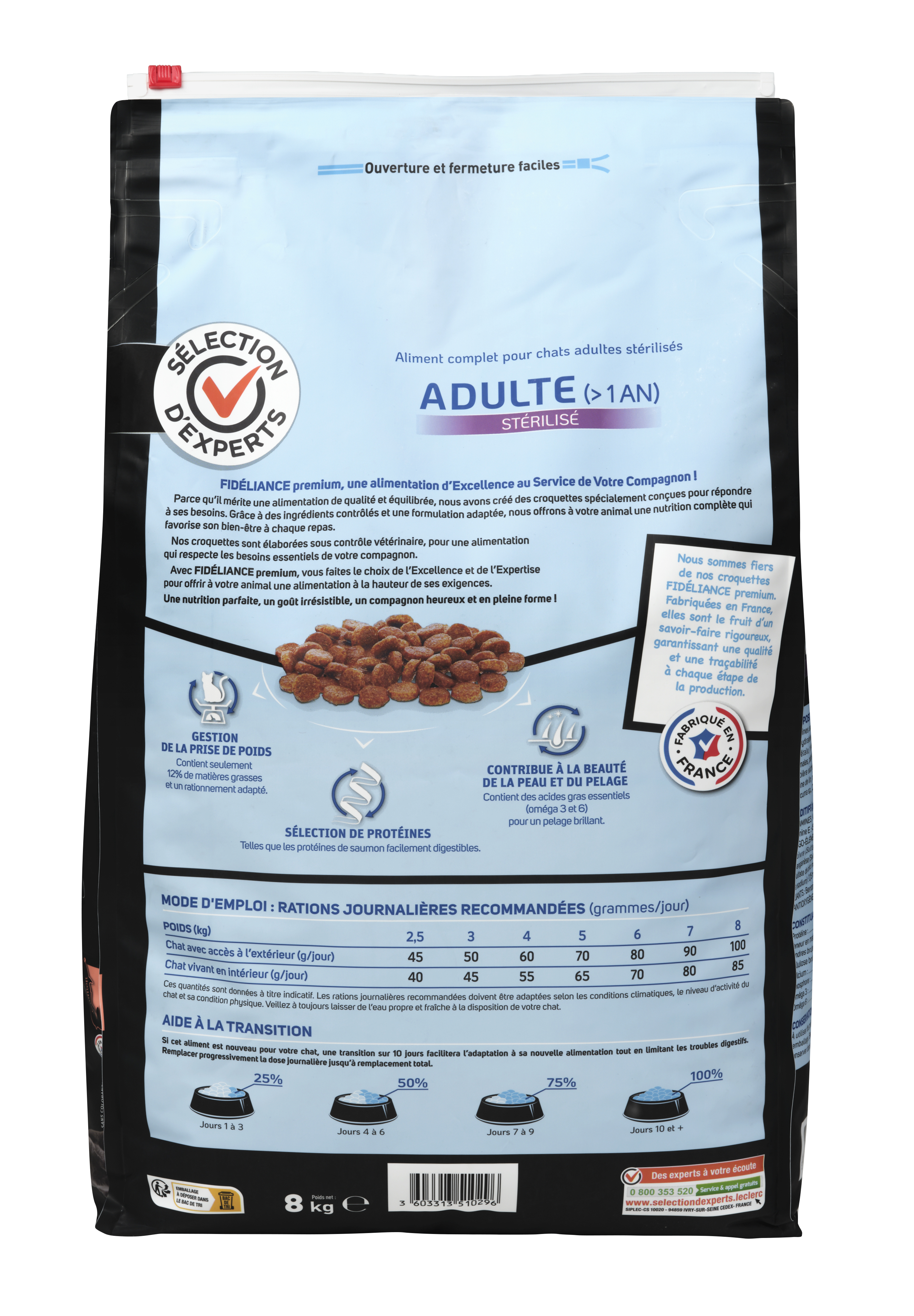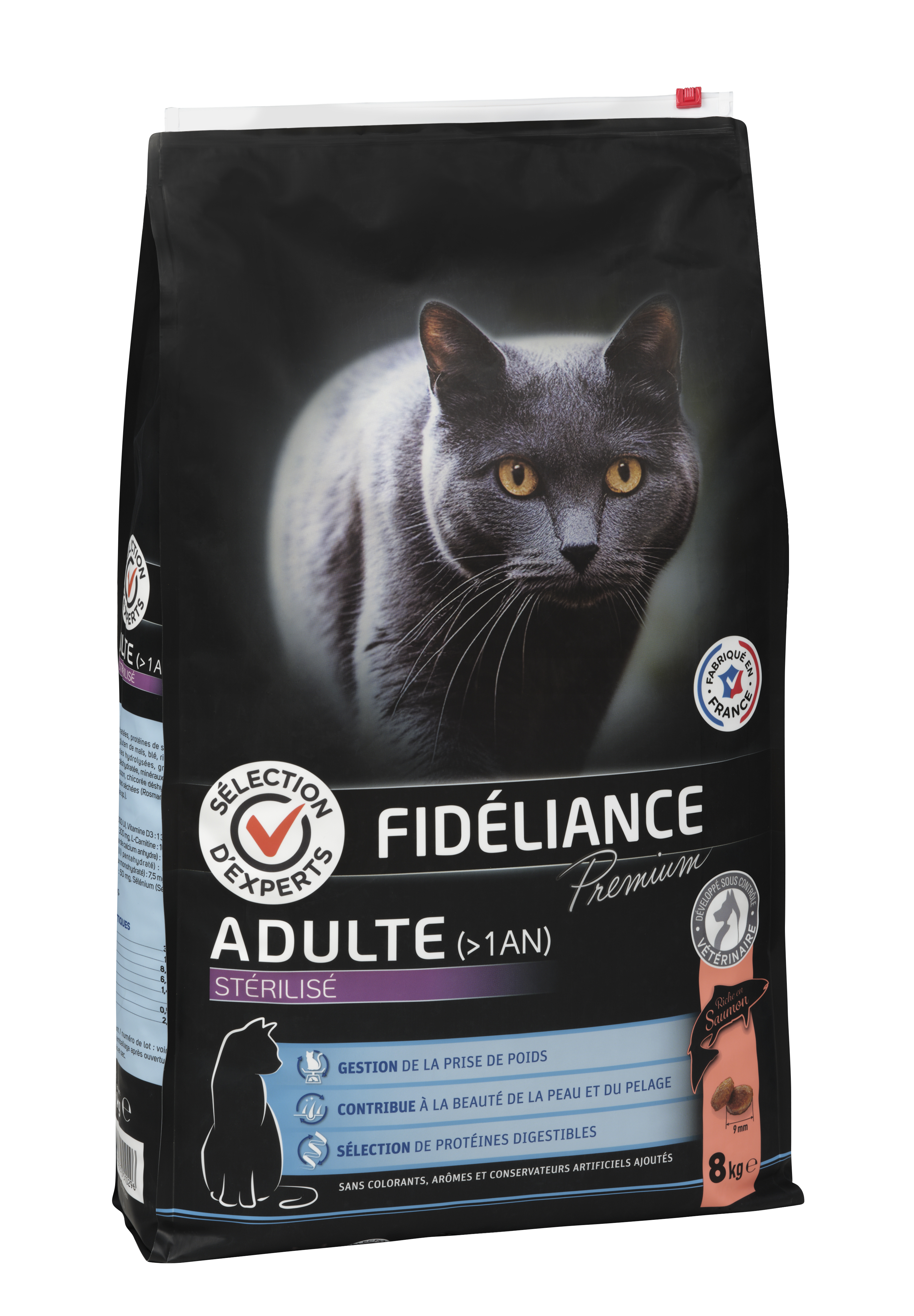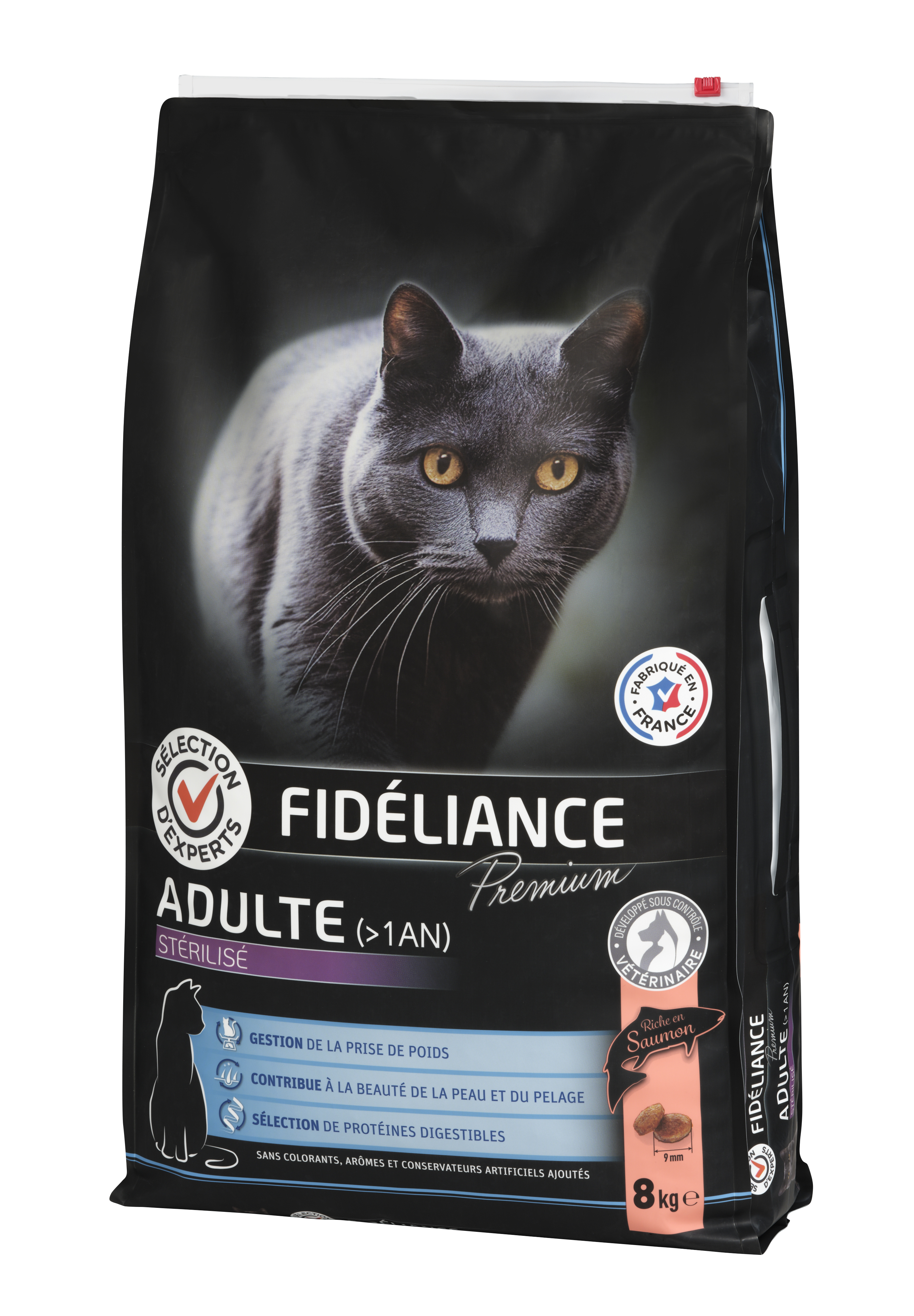 | Libellé | Croquettes chat adulte stérilisé riche en saumon, 8kg - Sélection d'Experts - Fidéliance Premium |