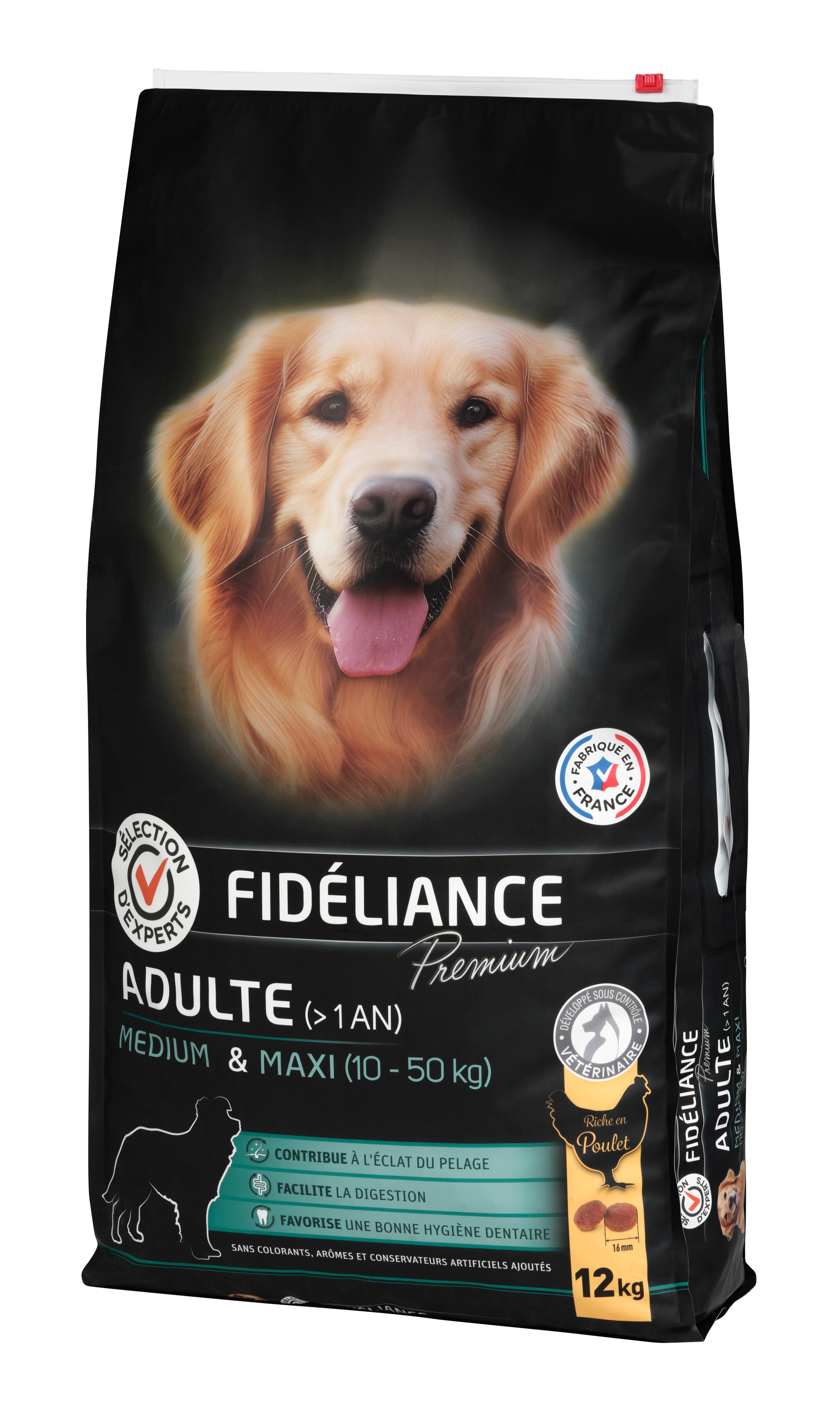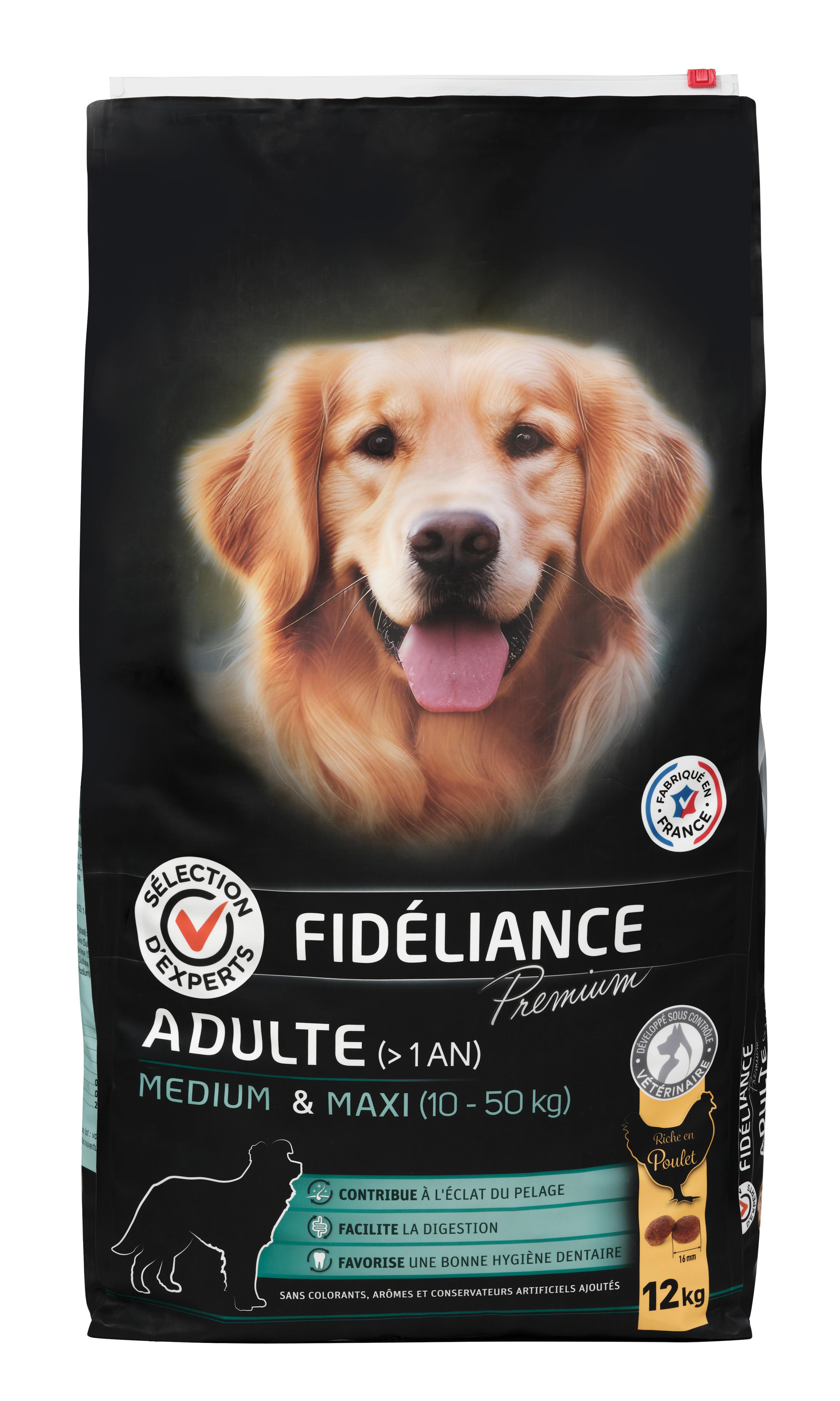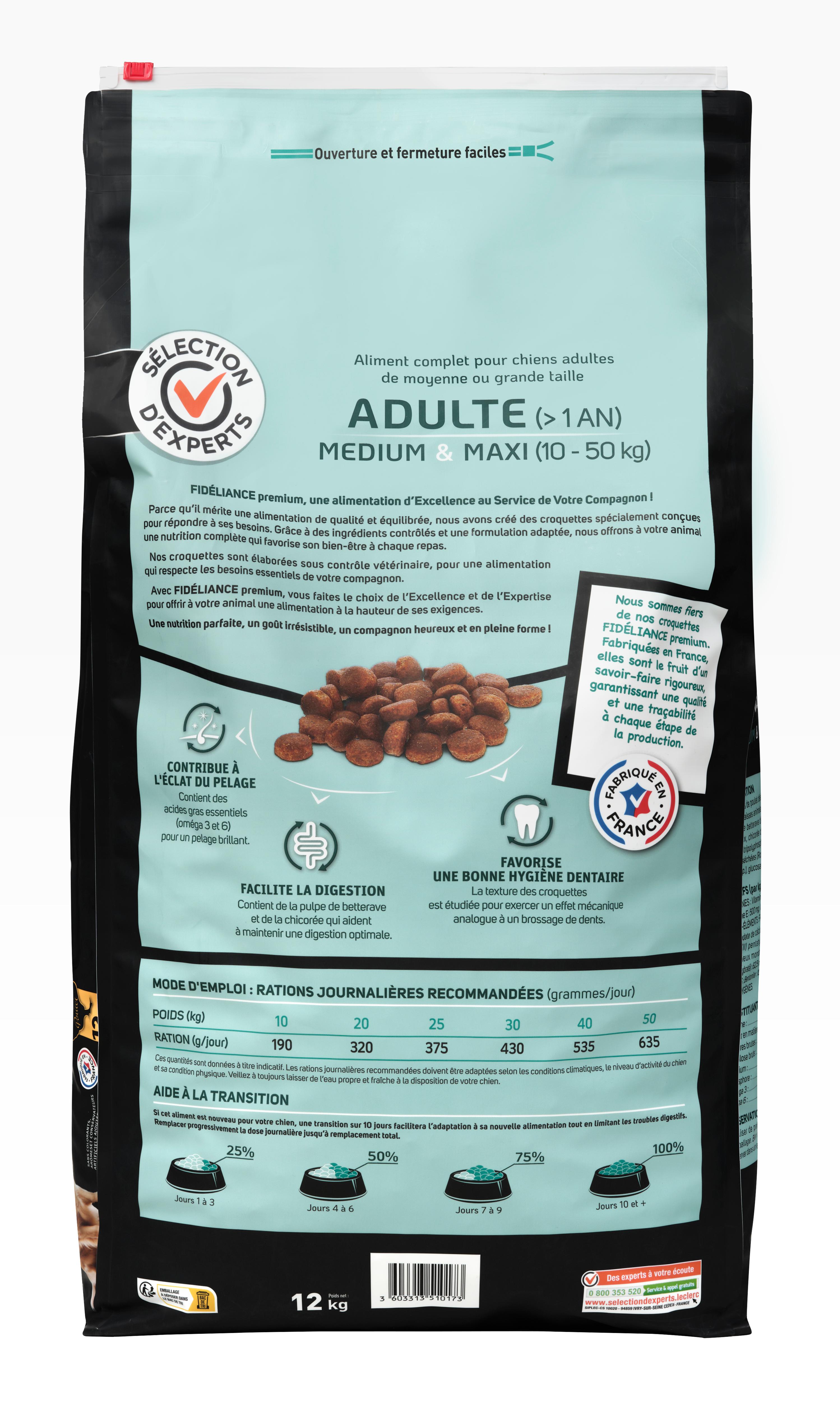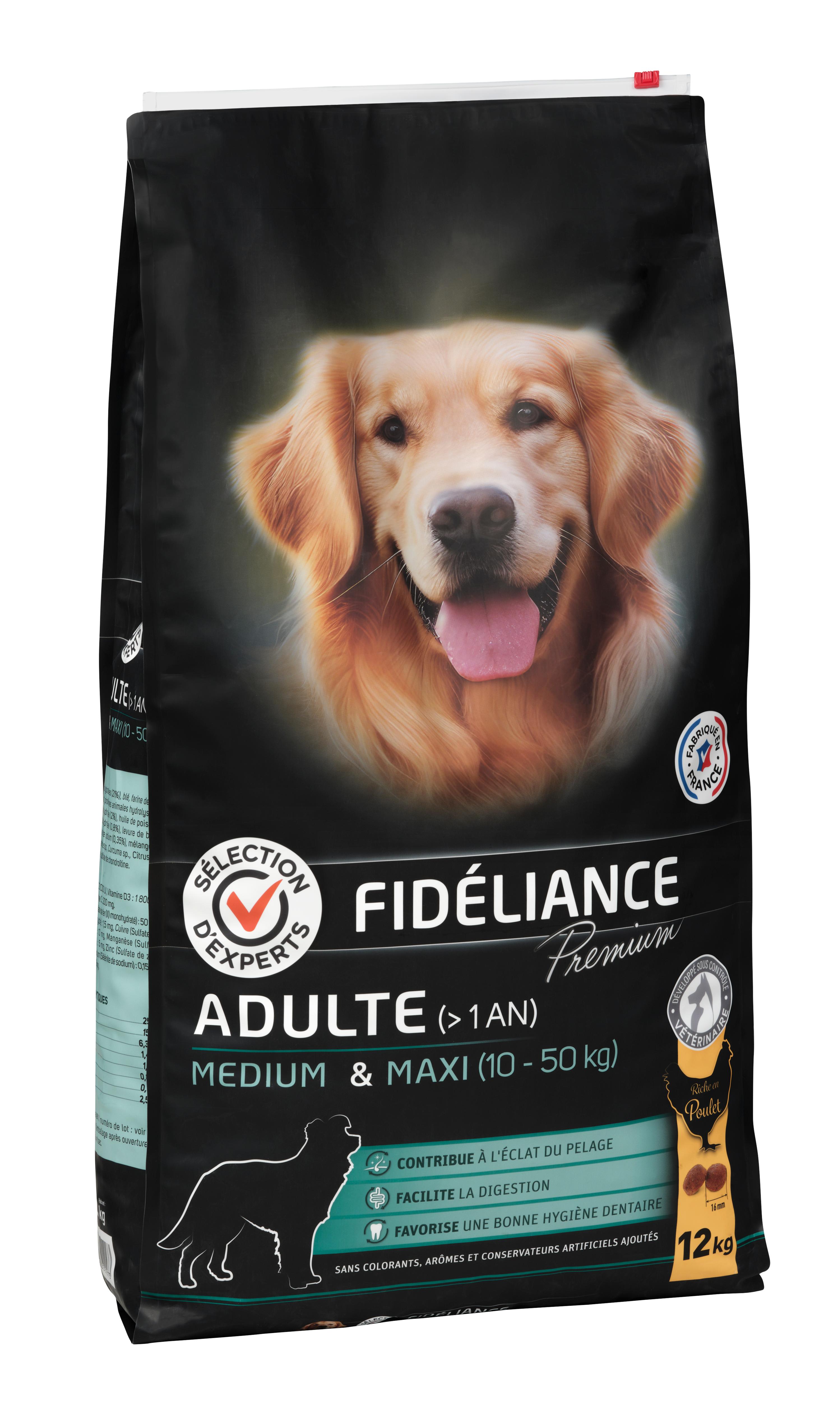 | Libellé | Croquettes chien adulte riche en poulet, Medium & Maxi, 12kg - Sélection d'Experts - Fidéliance Premium |