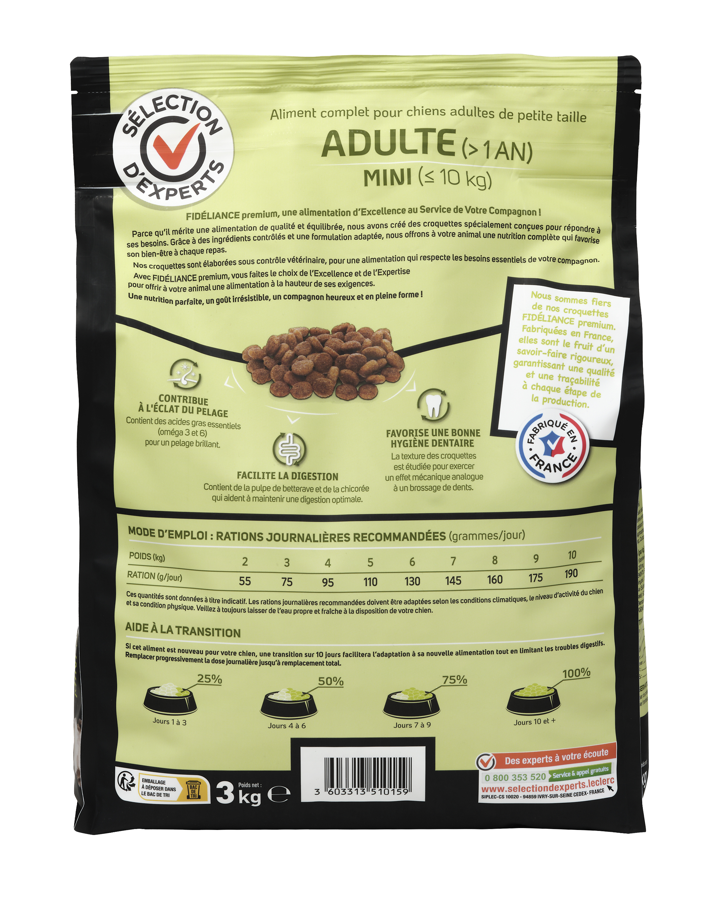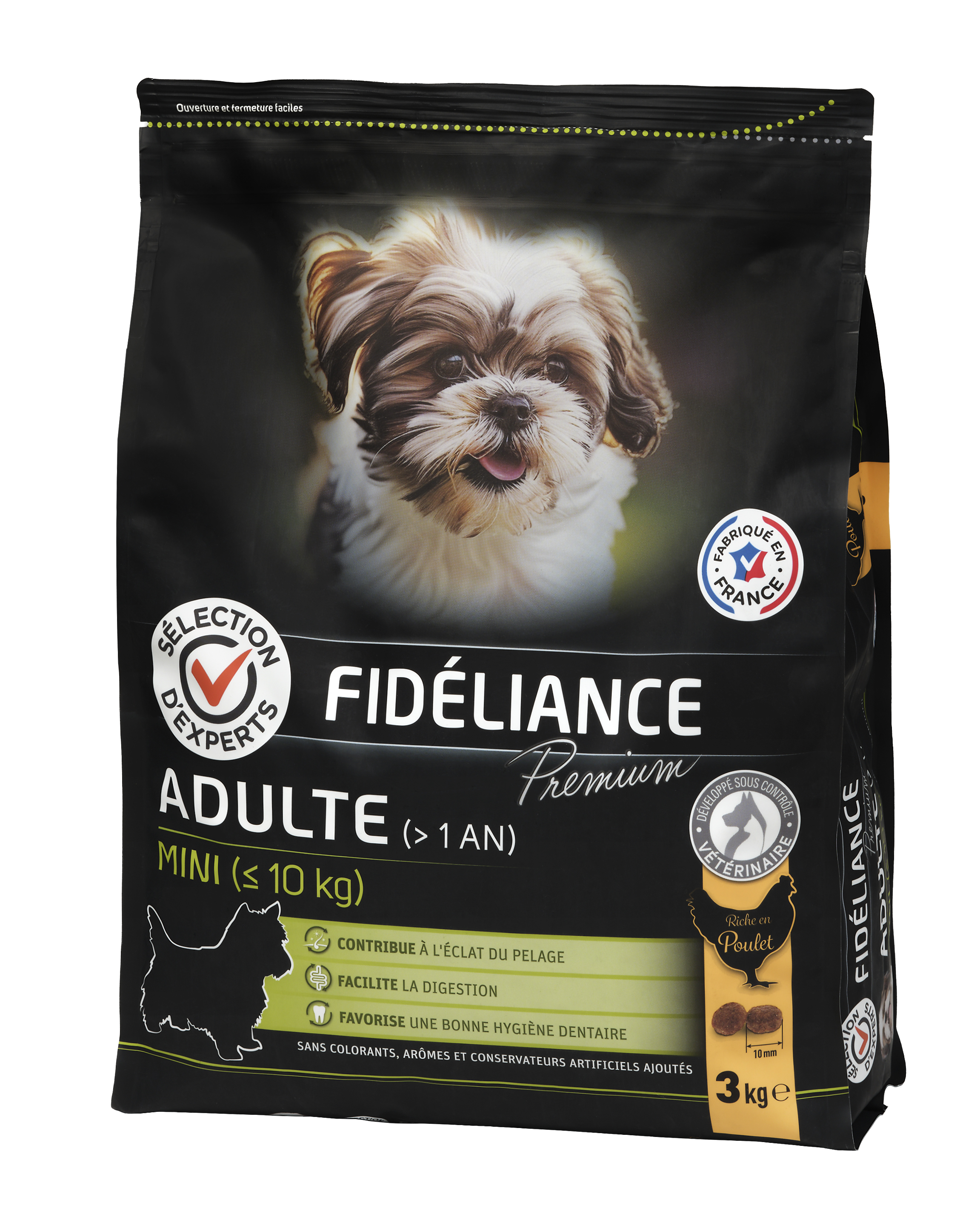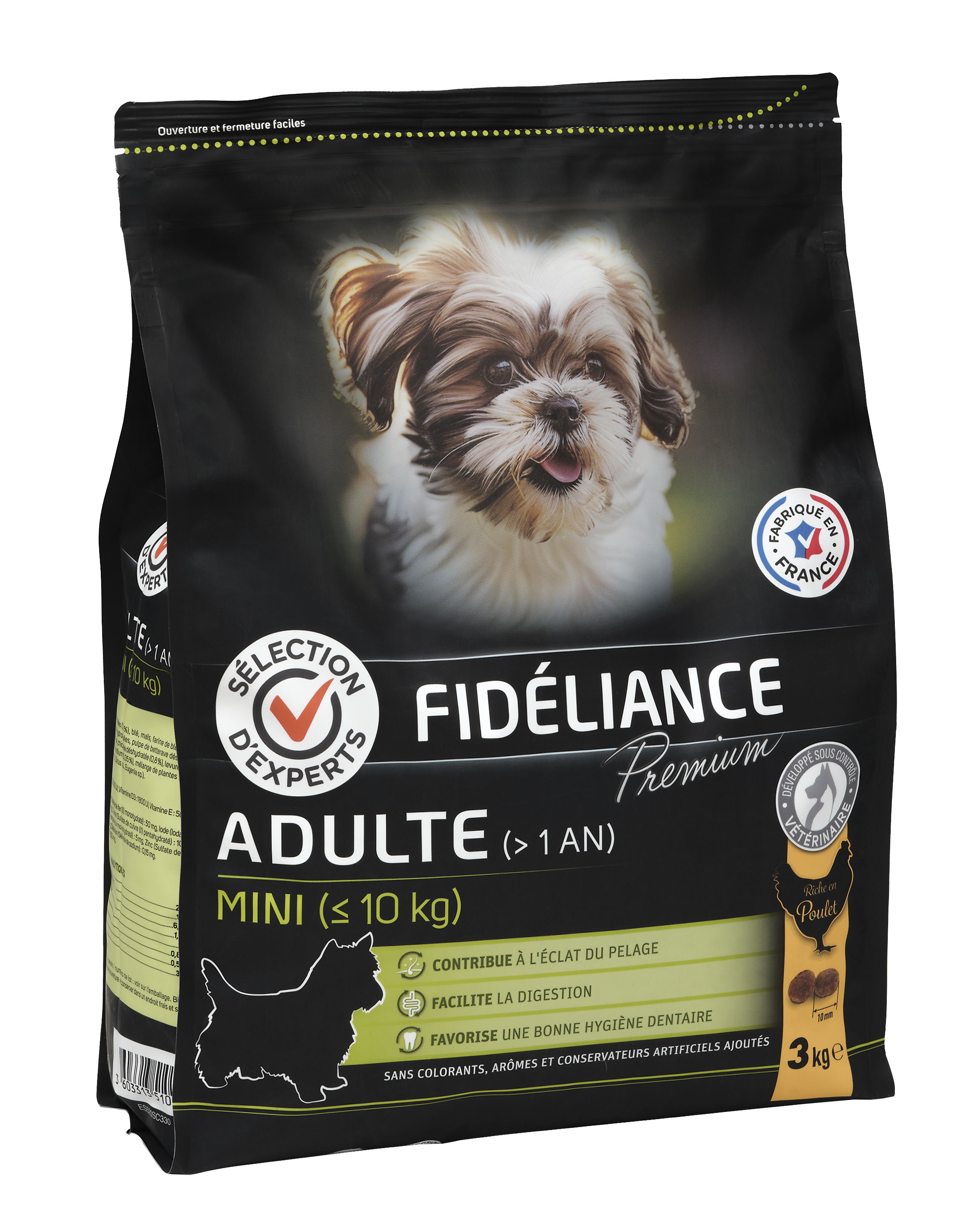 | Libellé | Croquettes chien adulte riche en poulet, Mini, 3kg - Sélection d'Experts - Fidéliance Premium |