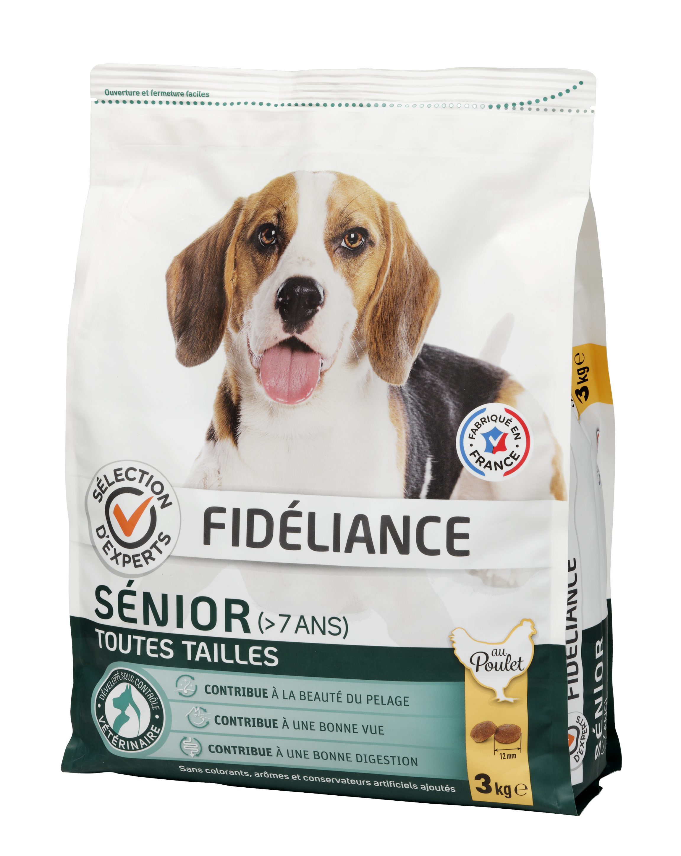 Fidéliance, des croquettes délicieuses pour le bien-être de votre compagnon ! - Aliment complet pour chiens sénior - Au poulet - Développé sous contrôle vétérinaire - Elaboré et produit en FRANCE - Sans colorants, arômes et conservateurs artificiels ajoutés
