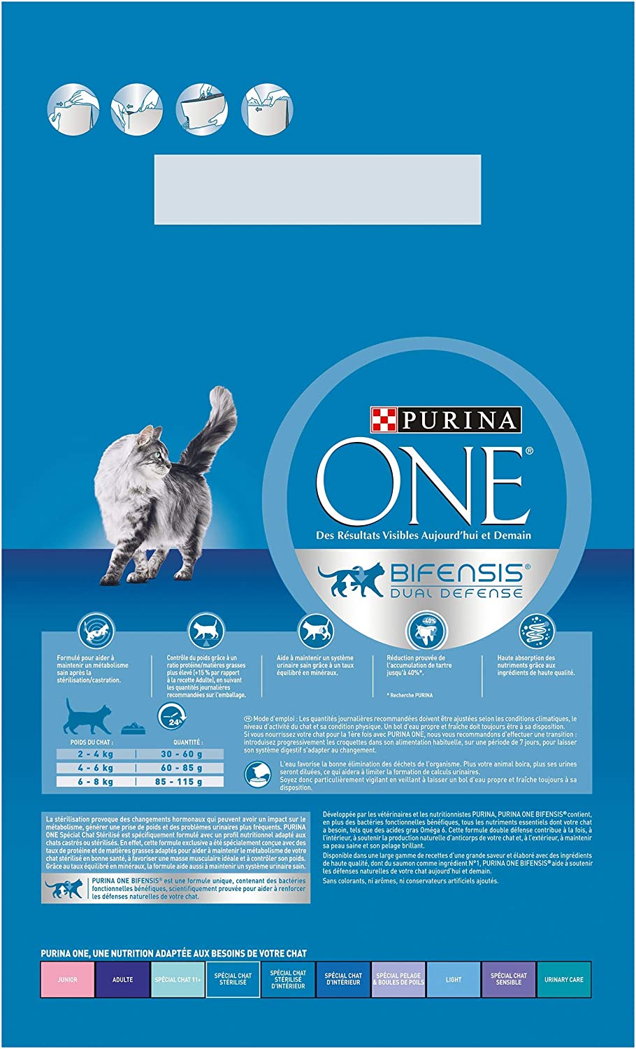 | Libellé | Croquettes pour Chat Stérilisé au Saumon et au Blé PURINA ONE 3KG |