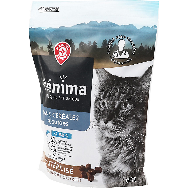 | Origine des principaux ingrédients | SAUMON FRAIS ORIGINE : EUROPE, PROTEINES DE SAUMON DESHYDRATEES ORIGINE : EUROPE |