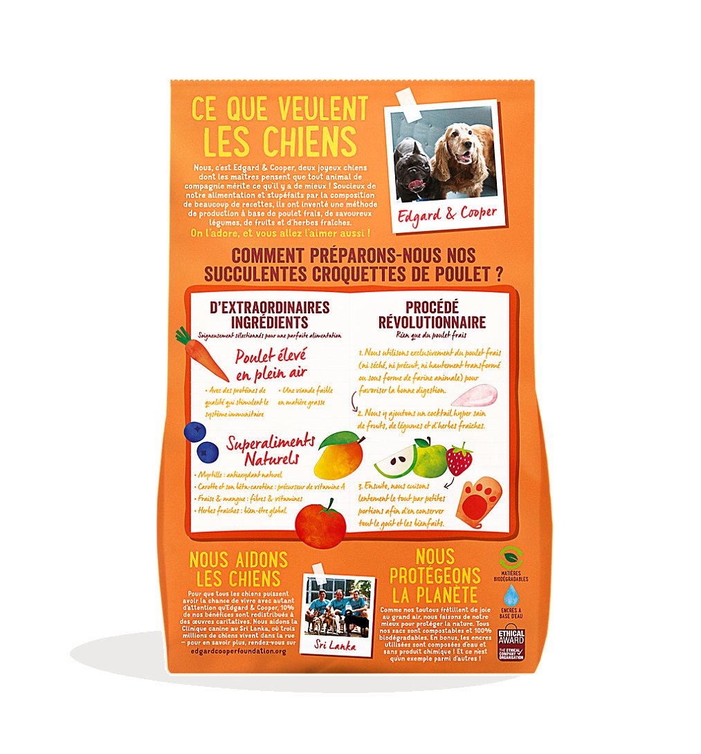 | Libellé | Croquettes Pour Chien Adulte Poulet Sans Céréales 12Kg Edgard Cooper |