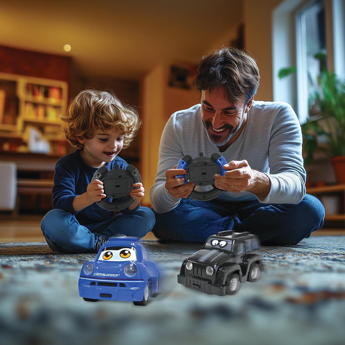 * Set de 2 voitures : pour des courses déjantées entre amis ! * Une télécommande en forme de volant facile à utiliser ! * Le capteur G de la voiture intègre un bouton ON/OFF, ce qui permet aux utilisateurs d'activer ou de désactiver facilement ses fonctionnalités ! * Effets sonores * Vitesse : jusqu'à 12KMH *Fréquence : 2.4G *Distance de fonctionnement : 15 mètres