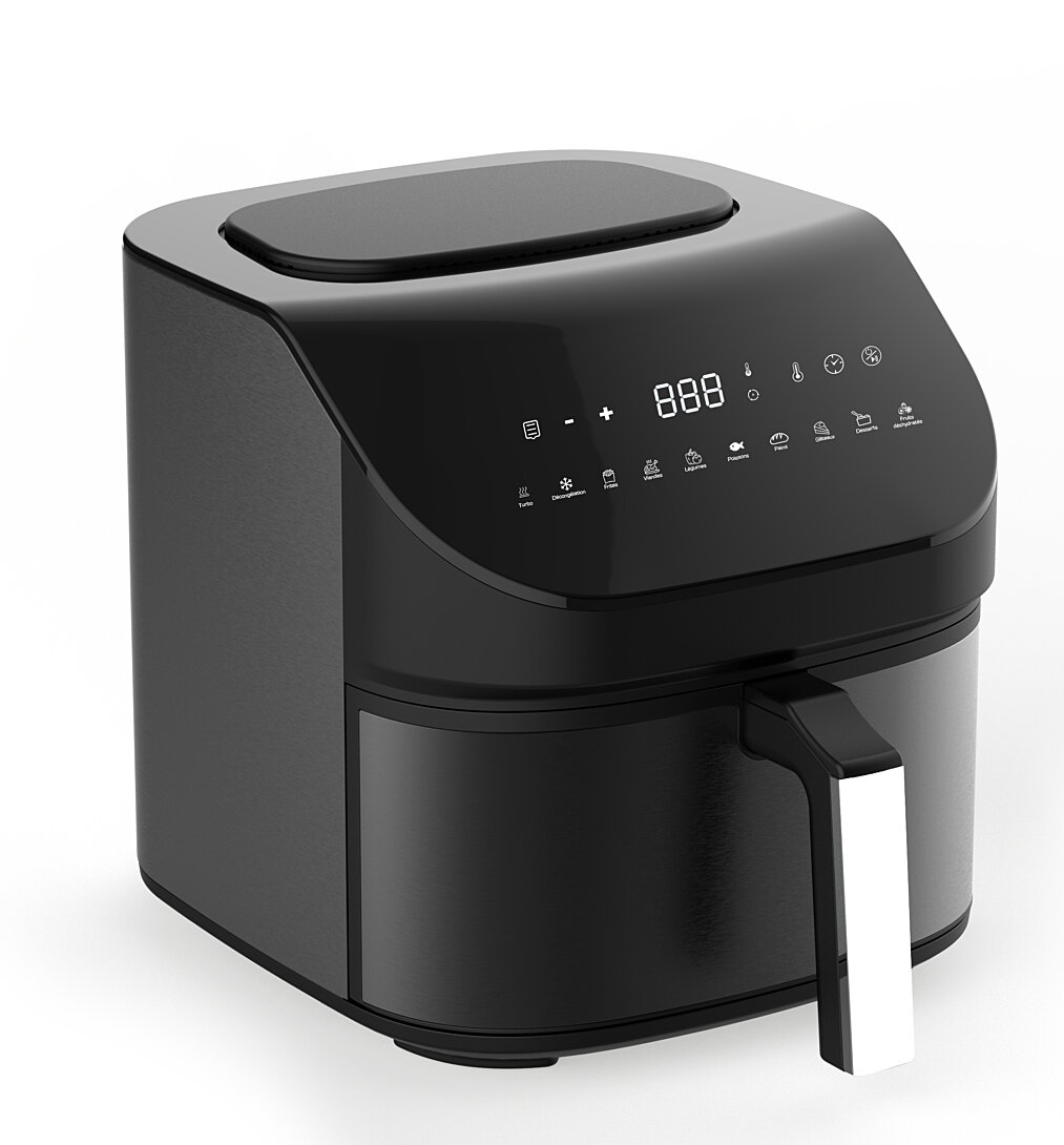 Friteuse diététique pour Cuire, Rotir, Frire et Griller viandes, poissons, légumes, gâteaux, pains, desserts, décongeler, réchauffer, deshydrater, maintenir au chaud et même faire des frites ! - Technologie à Air Pulsé “Air 360” : l’air chaud circule à grande Vitesse dans tous les sens pour des aliments fondants à l’intérieur et croustillants à l’extérieur. - Panier grande capacité (7L), extra-large (24x24cm) pour une meilleure circulation de l'air et un doré et un croustillant inégalables ! Jusqu'à 1,3Kg de frites ! - 10 modes de cuisson au goût français prédéfinis : Turbo, Frites, Viandes, Poissons, Légumes, Pains, Gâteaux, Desserts, décongélation, déshydratation. Plus un thermostat et un timer réglables pour des cuissons personnalisées (de 40°C à 200°C). - Cuisson assistée : signal sonore rappellant de mélanger les aliments en cours de cuisson - Simple : Ecran de contrôle digital, intuitif et incliné. Arrêt automatique en fin de cuisson - Le croustillant sans les calories ! L'air chaud entoure les aliments pour les cuire et les dorer, sans ou avec très peu d'huile. Les aliments sont fondants à l'intérieur et croustillants à l'extérieur. - Finition soignée en acier inoxydable : facile à nettoyer & durée de vie plus longue - Panier et grille recouverts d'un revêtement antiadhésif. - La paroi et la poignée restent froids. Base antidérapante. - Silencieux, efficace et puissant (1 600 W) pour une cuisson rapide. - Economique : consomme beaucoup moins d'energie qu'un four et dégage moins de chaleur