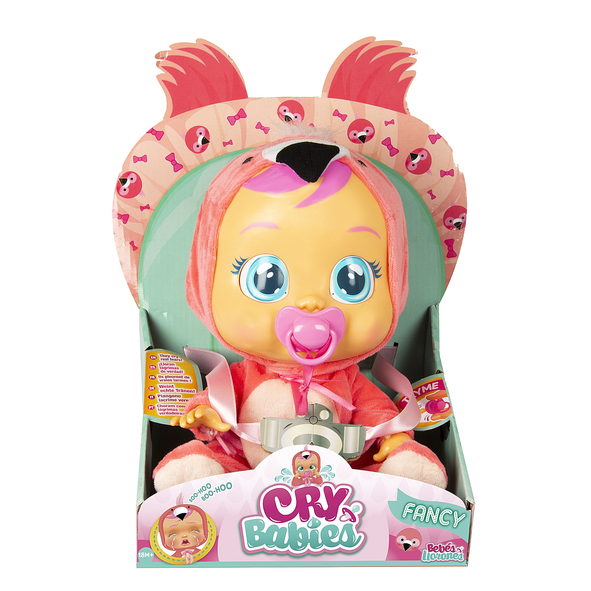 | Plus produit | Les Cry Babies sont d\'adorables bébés mais ils sont très capricieux ! Quand on leur retire la tétine, ils sanglotent et pleurent de vraies larmes ! Ton Cry Babies réclame ton attention: prends soin de lui, scalîne-le, sèche ses larmes et redonne-lui sa tétine pour qu\'il arrête de pleurer. Chaque Cry Babies est unique, et est vêtu d\'un pyjama au design différent. Leur pyjama tout doux est interchangeable et peut se laver à la machine. Inclus également une tétine. Piles incluses. |