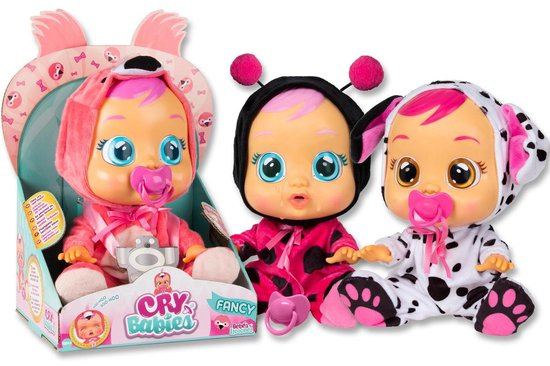 Les Cry Babies sont d'adorables bébés mais ils sont très capricieux ! Quand on leur retire la tétine, ils sanglotent et pleurent de vraies larmes ! Ton Cry Babies réclame ton attention: prends soin de lui, scalîne-le, sèche ses larmes et redonne-lui sa tétine pour qu'il arrête de pleurer. Chaque Cry Babies est unique, et est vêtu d'un pyjama au design différent. Leur pyjama tout doux est interchangeable et peut se laver à la machine. Inclus également une tétine. Piles incluses.