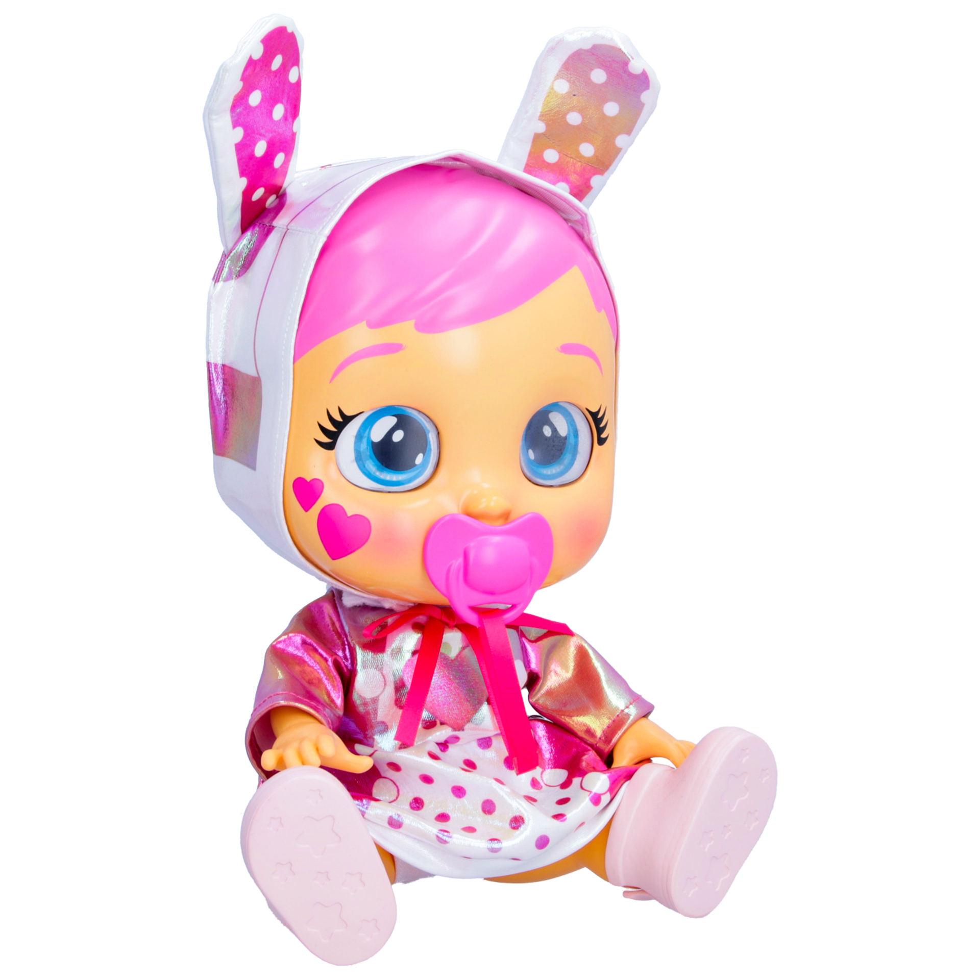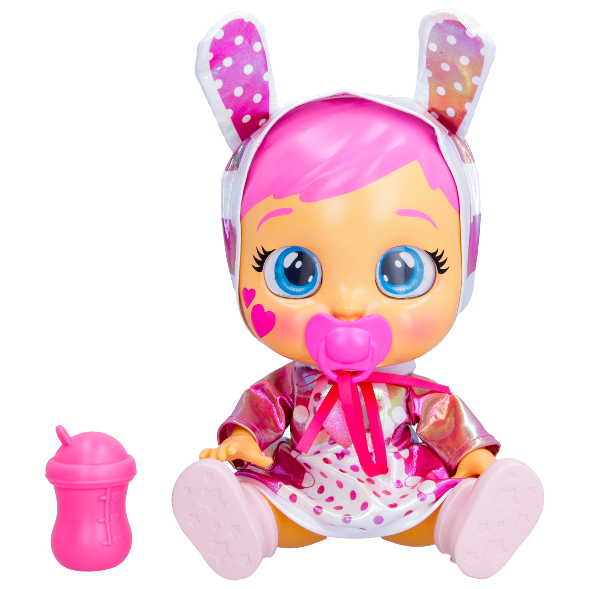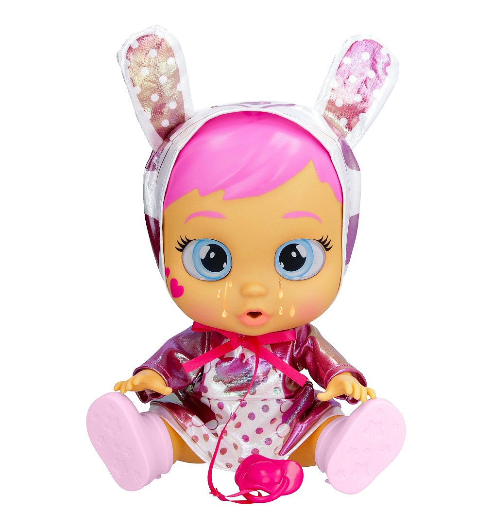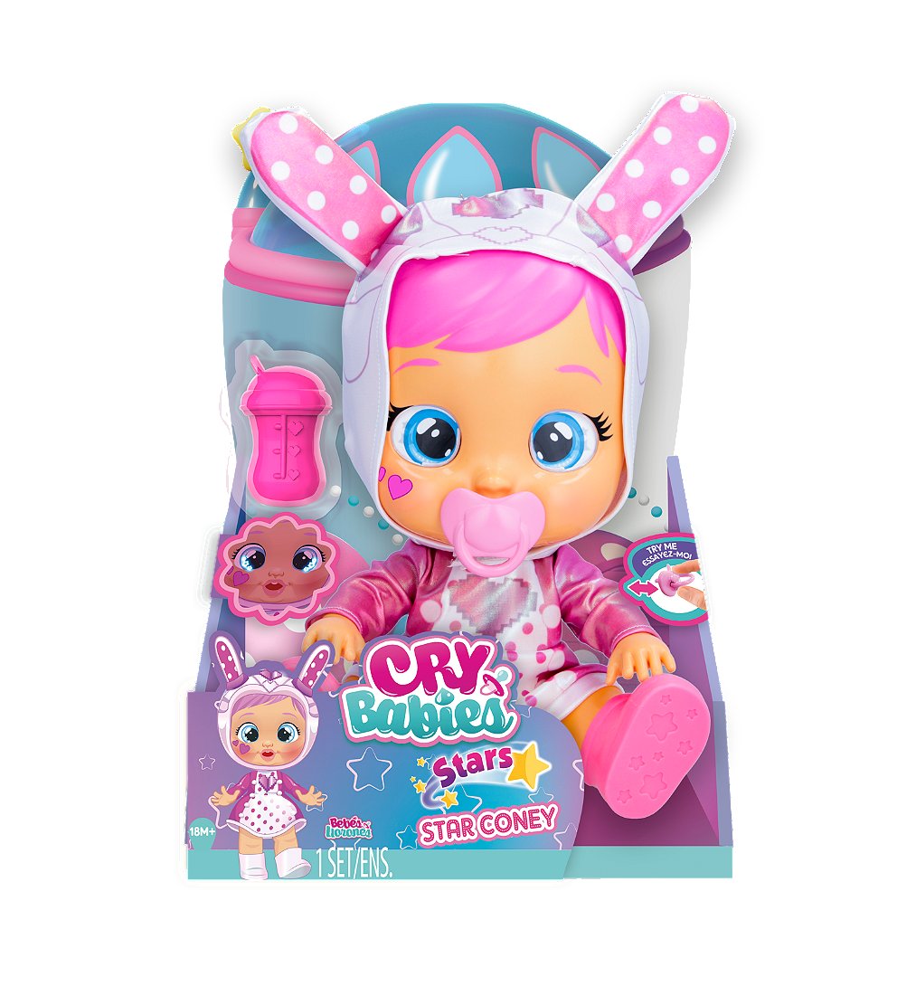 Poupon à fonctions Cry Babies Stars Babies vont explorer les étoiles! Chaque poupée a quelque chose de spécial dans les yeux: une lumière de couleur! Chaque personne a une couleur différente. Comme tous les Cry Babies, elles pleurents de vraies larmes. Elle arrête de pleurer quand on leur donne leur tétine ou leur biberon. Elles ont des cheveux peints. Inclus : 1 biberon, 1 tétine. Dès 18 mois.