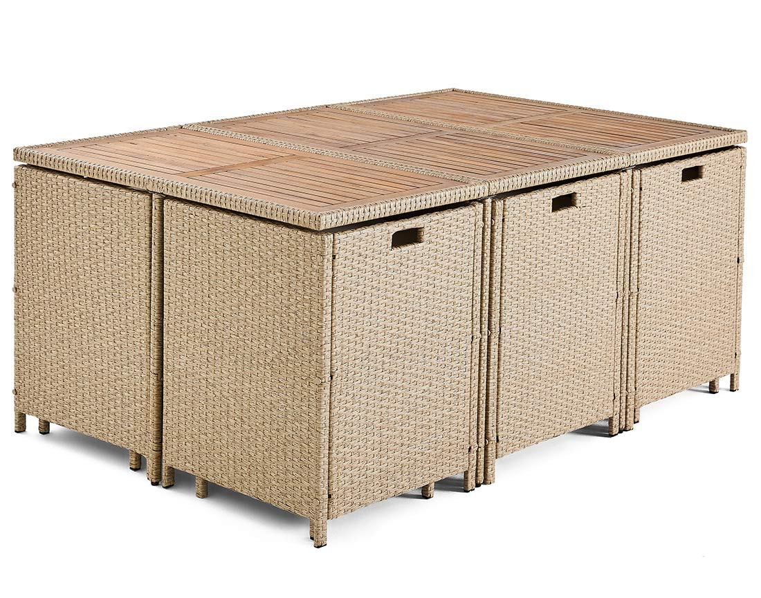 | Libellé | Cuba – salon de jardin encastrable en résine tressé beige - 10 places - coussins beige + housse de protection |