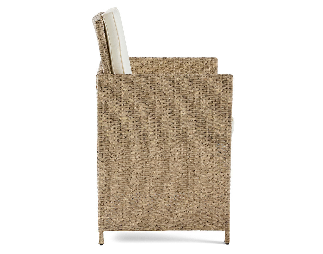 - Détail des matières : Matières de la structure : Résine tressée - Finition : Satinée - Pieds en acier - Résistant à l’humidité et aux rayures - Charge maximum : 160 kg