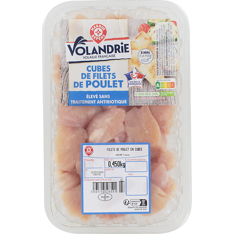 Cubes de filets de poulet sans antibiotiques - 450 g - VOLANDRIE