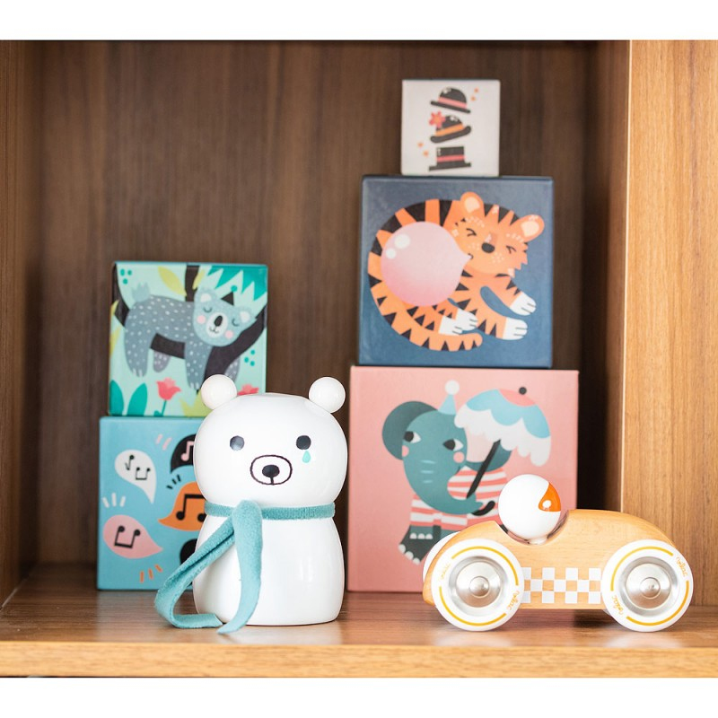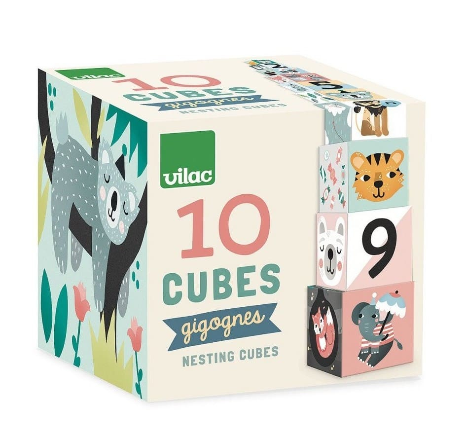 10 cubes gigognes à empiler en carton illustrés par notre nouvelle artiste Michelle Carlslund. A partir de 18 mois.