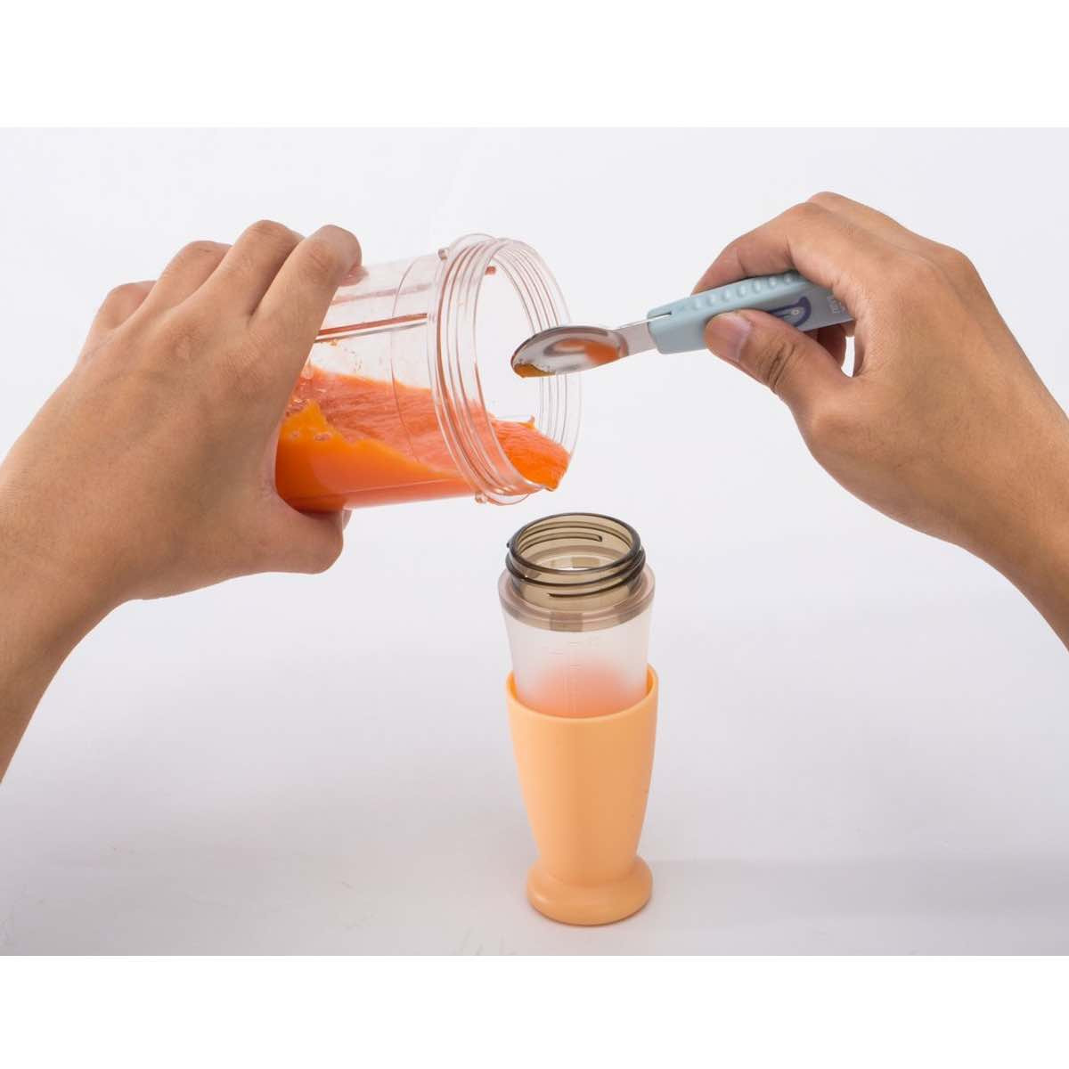 La cuillère d'alimentation distribue la nourriture pour bébé, cuillerée par cuillerée ! Vous n'avez plus besoin de contenant spécifique pour bébé ! Utilisez la cuillère distributrice d'aliment, chaud ou froid, spécialement conçu pour nourrir bébé aisément d'une seule main.