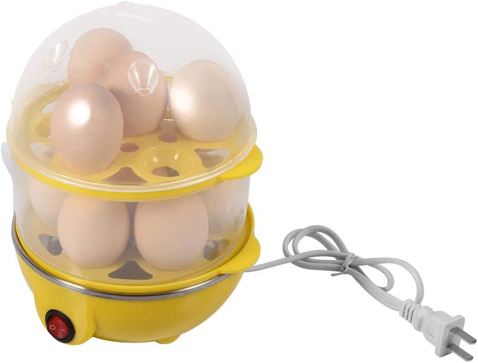 Grande capacité : les cuiseurs à œufs ont deux couches. Vous pouvez utiliser une ou deux couches de maille vapeur pour répondre à vos besoins. Vous pouvez choisir de cuire jusqu'à 14 œufs à la fois.CONSERVATION RAPIDE - Le cuiseur vapeur adopte une plaque chauffante en acier inoxydable de haute qualité, qui chauffe rapidement sans attendre longtemps, afin que vous puissiez déguster de délicieux œufs en un rien de temps.Utilisation sûre : le cuiseur vapeur électrique dispose d'une fonction d'arrêt automatique, qui peut éviter une cuisson excessive, une odeur d'œuf ou un danger inutile. Le bouton "ON/OFF" est très simple à utiliser.Facile à utiliser : la tasse à mesurer l'eau incluse vous permet de savoir la quantité d'eau dont vous avez besoin pour cuire des œufs ou d'autres aliments. Même une personne qui n'a jamais fait bouillir un œuf peut facilement l'utiliser.Multifonction : peut être utilisé pour cuire des œufs à la vapeur, cuire des œufs à la vapeur, du maïs, du pain à la vapeur, réchauffer du lait, cuire des légumes à la vapeur ou d'autres aliments. L'ustensile de cuisine idéal pour le petit-déjeuner, le déjeuner, le dîner et les collations.