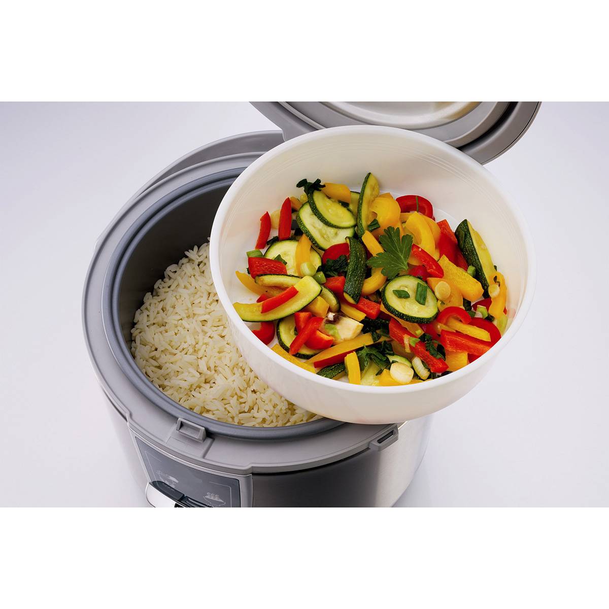 Le cuiseur à riz prépare en un temps très court et de manière parfaite le riz blanc, ou ses différentes variantes, comme le riz au lait ou le risotto. Il dispose en outre d'un plateau pour la cuisson à la vapeur, d'un récipient antiadhésif amovible pour un nettoyage facile et d'une fonction automatique pour maintenir le riz à sa température idéale plus longtemps. Outre la préparation du riz, vous pouvez faire cuire à la vapeur toutes sortes d'aliments : poisson, légumes, viande, etc. de manière saine et naturelle.