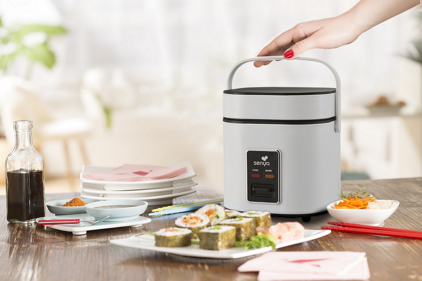Grâce à sa poignée intégrée, transportez facilement cette rizeuse même durant votre déplacement !