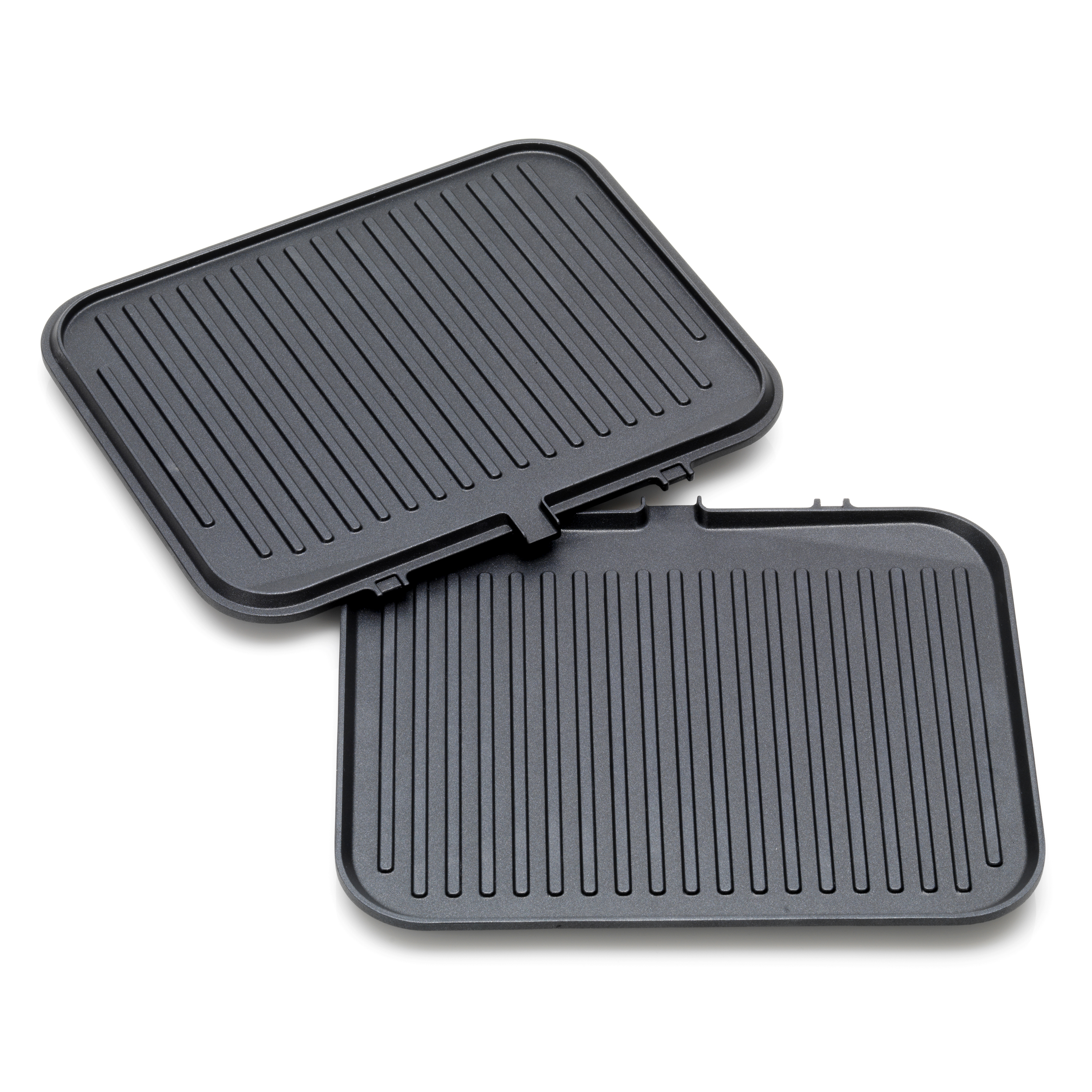 Le Griddle & Grill Cuisinart dispose de 2 jeux de plaques amovibles et compatibles au lave-vaisselle. La plaque Grill, avec les ressauts, laissera des marques sur les steaks ou les paninis. La plaque Plancha, lisse, sera parfaite pour les œufs et les pancakes. On peut utiliser simultanément une plaque de chaque, pour un petit-déjeuner complet.